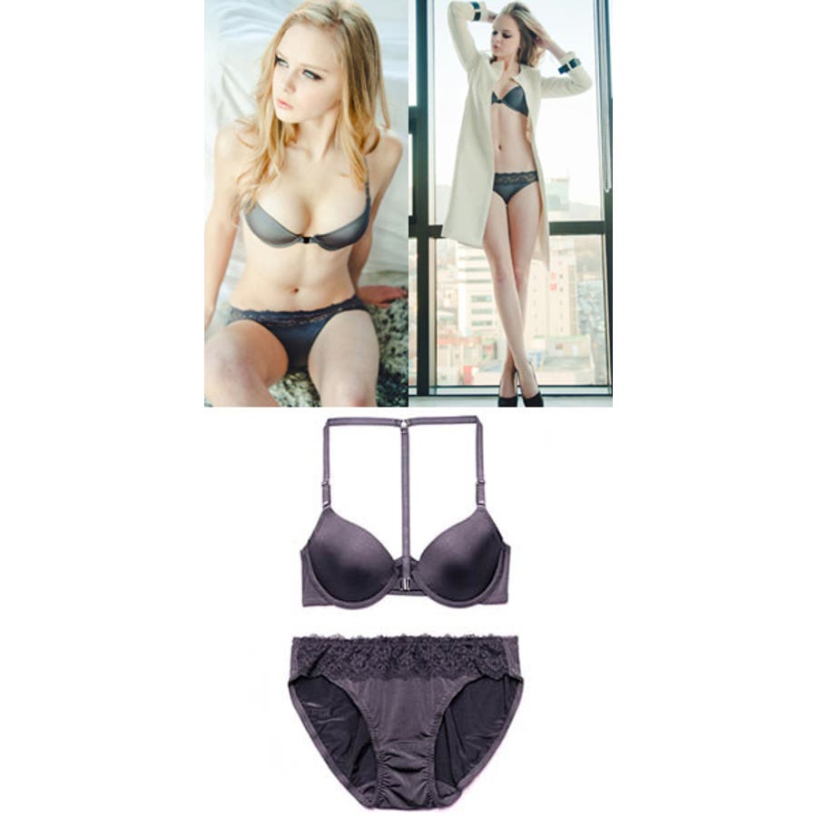 【C-style】【rz6271】シンプルでラグジュアリーなデザイン♪高級感ある背中Tラインのグレーブラセット(ショーツセット)