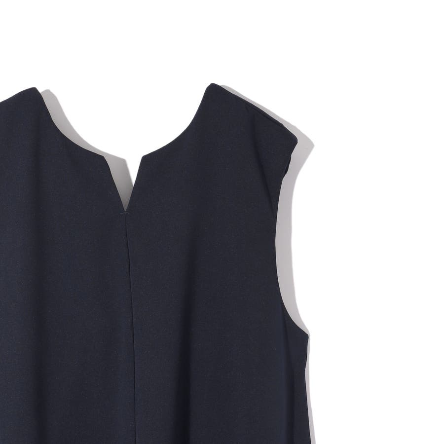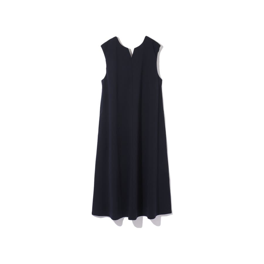 表面に凹凸感のあるカットジョーゼット素材を使用したVネックとキーネックの前後でご着用いただけるダブルフェイスのワンピースです。