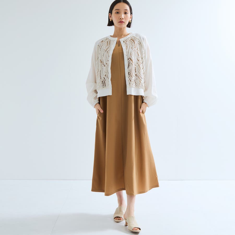暑さの感じられる日には一枚ワンピースとして、気温の落ち着いた日にはシアーインナーなどを仕込んだレイヤードルックでご着用いただけるデザインです。