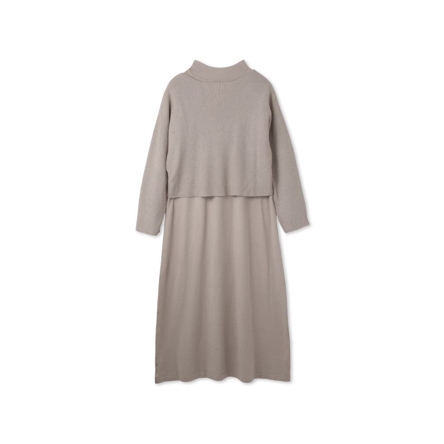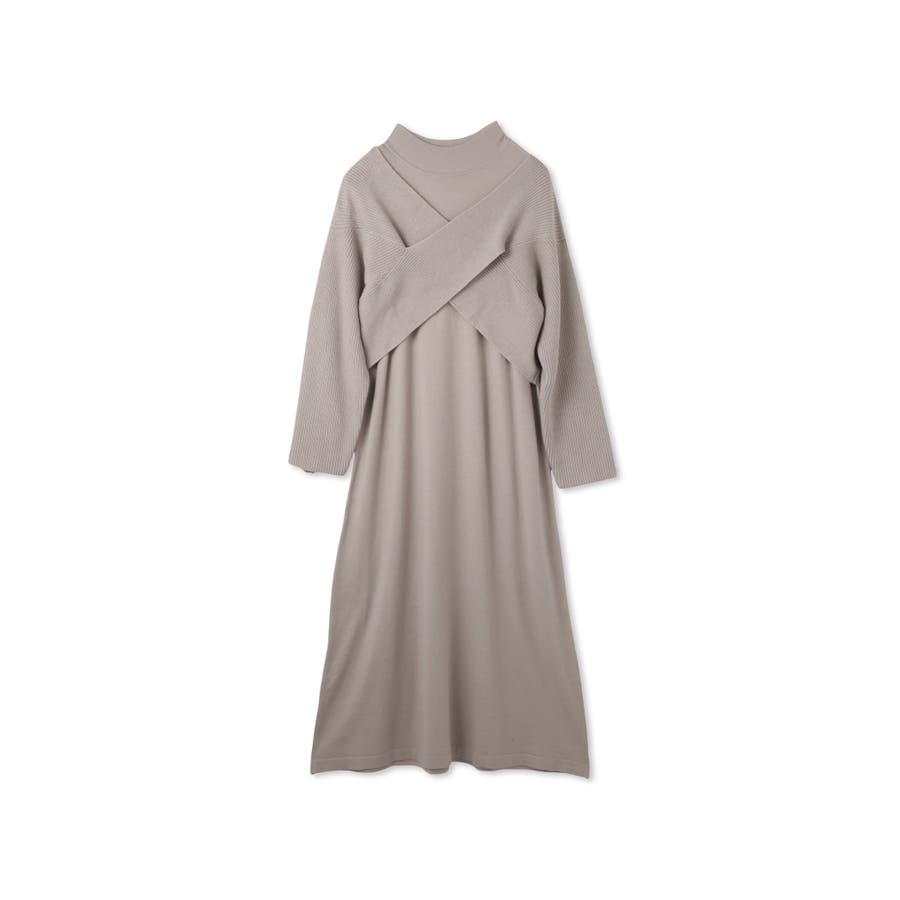 クロップド丈のカシュクールニットトップスとハイネックニットワンピースのアンサンブルセットアイテムです。