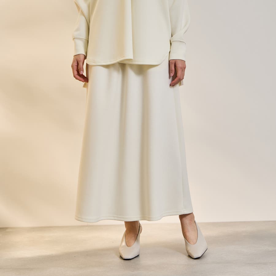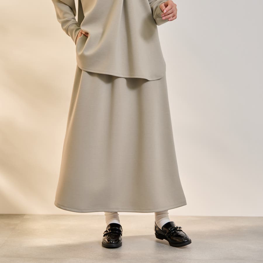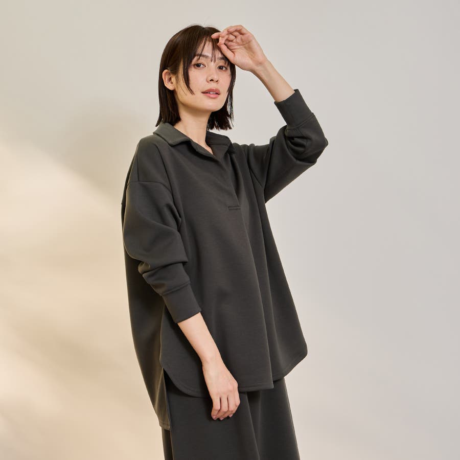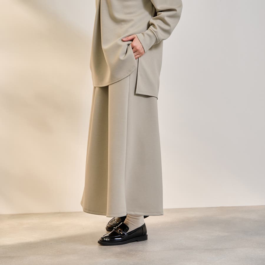 抜け感、ゆとりのあるリラクシーなスキッパーシャツとミニマルなセミフレアシルエットスカートの2ピースアイテムです。