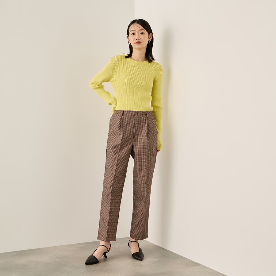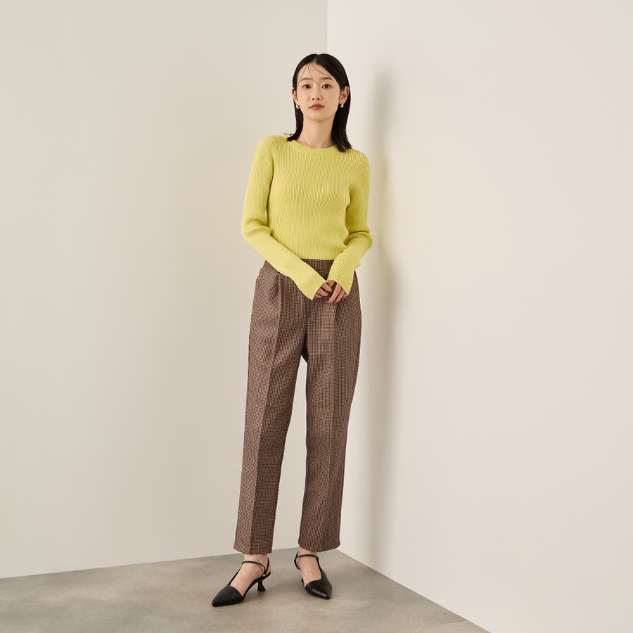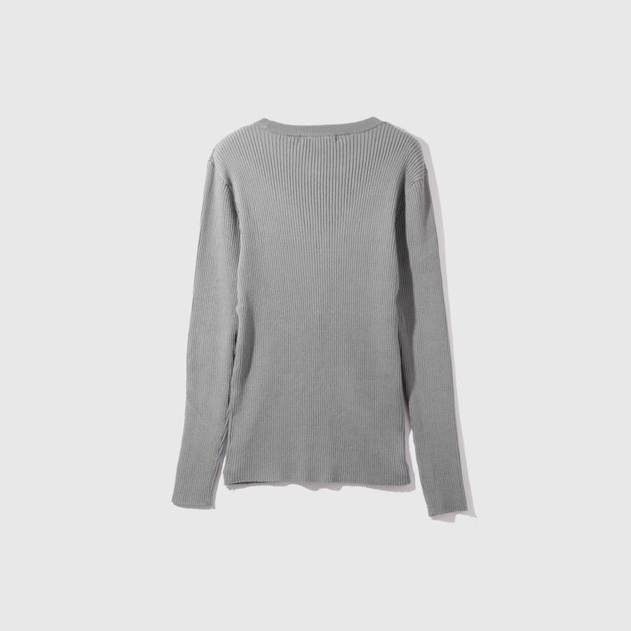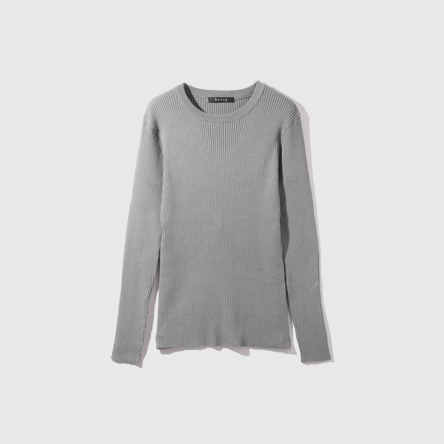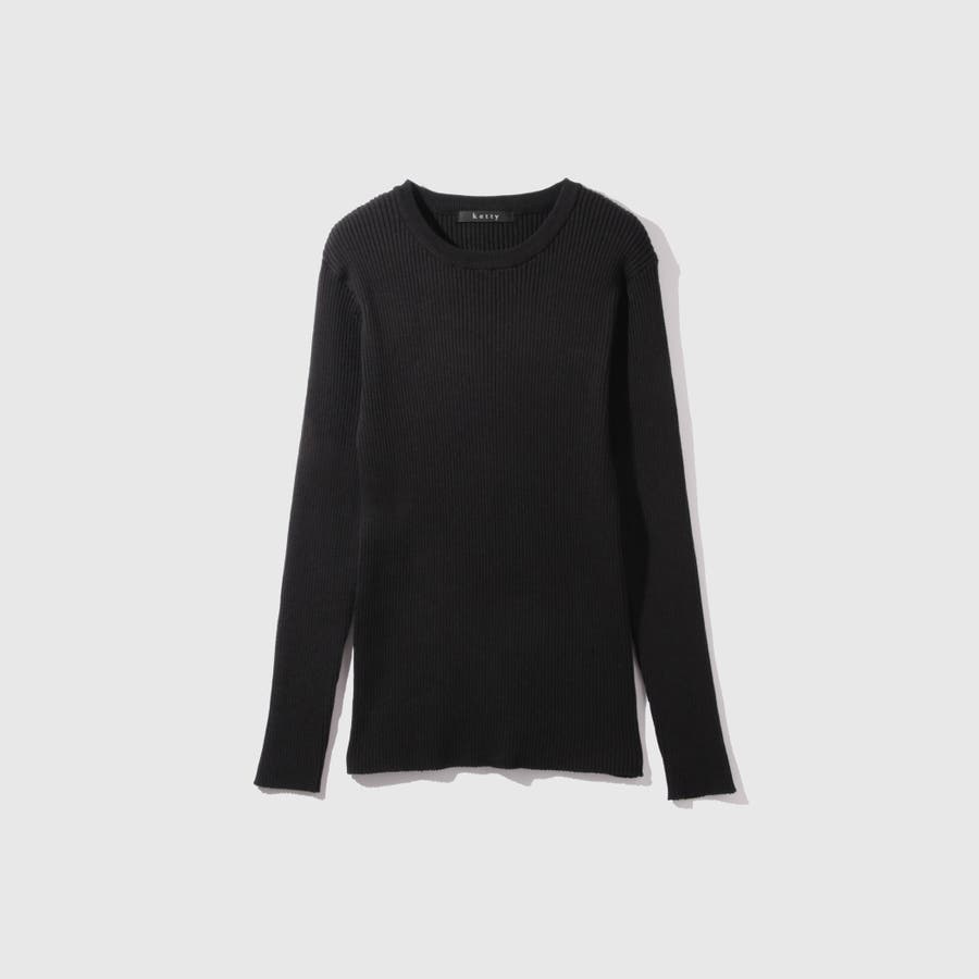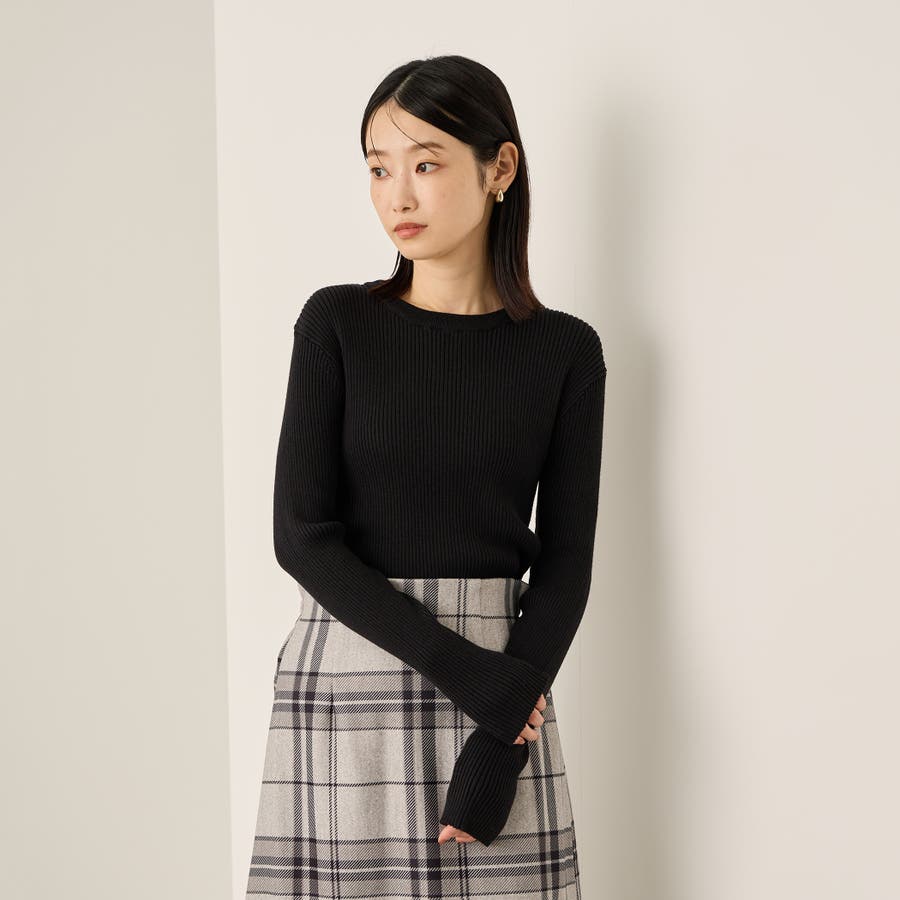 一枚着としてもレイヤードスタイルにも便利なリブニットです。