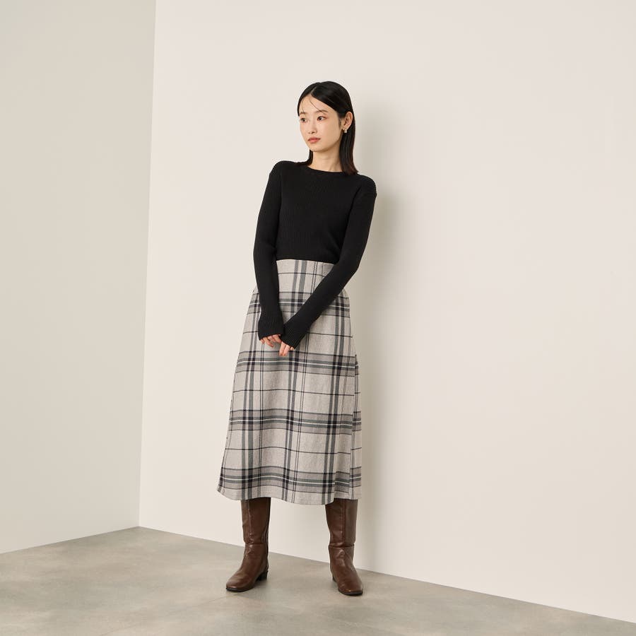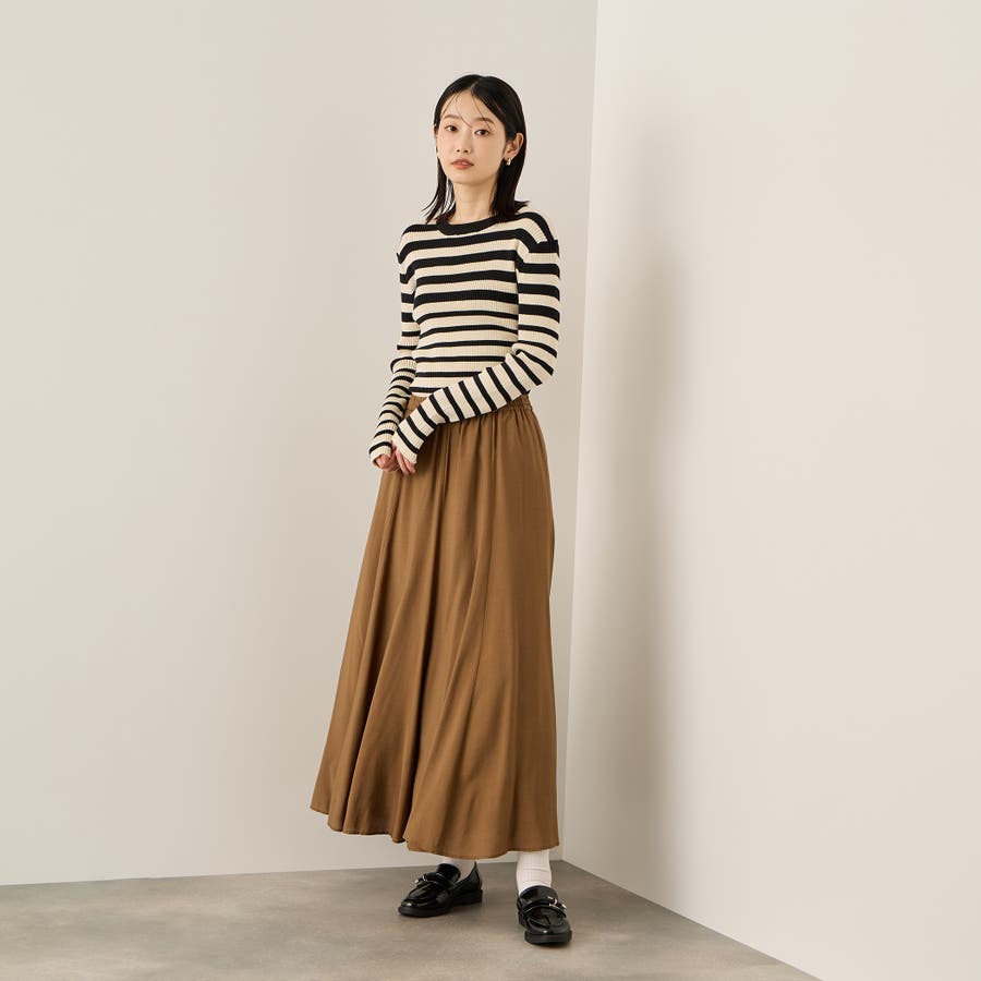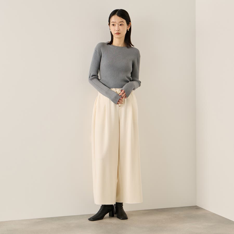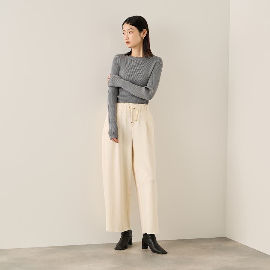 ボディに寄り添うシルエットなので、ワイドパンツやフレアスカートなどとのコーディネートがおすすめです。