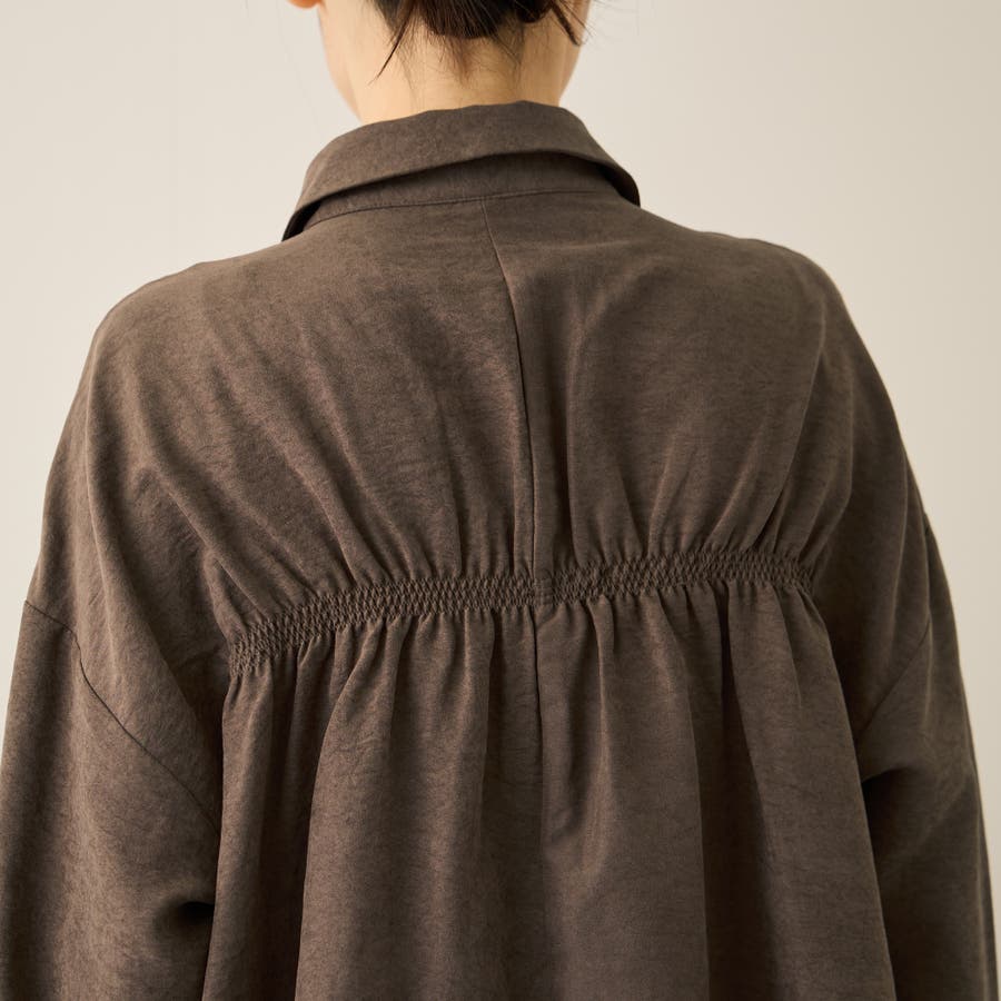 サテンピーチバックギャザーブラウス≪手洗い可能≫