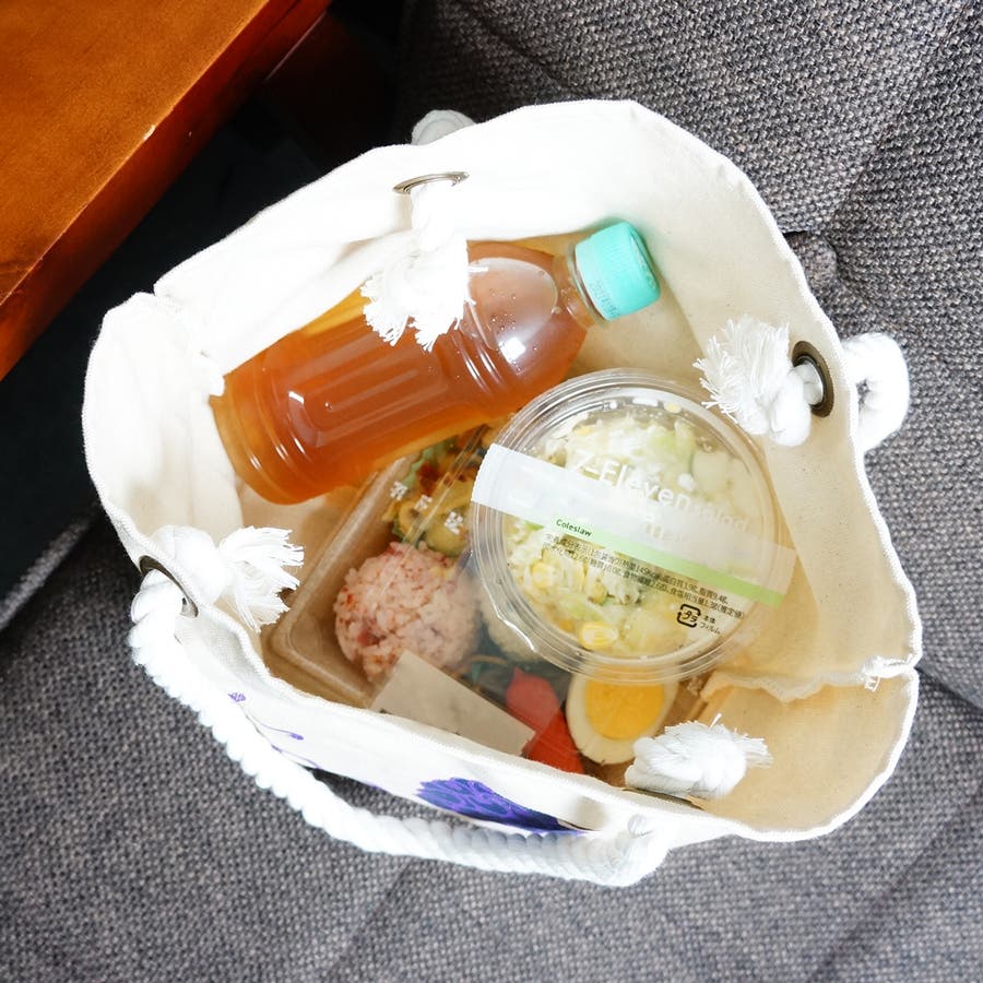 コンビニのお弁当やペットボトル(写真は300ml)を入れるのもおススメです。