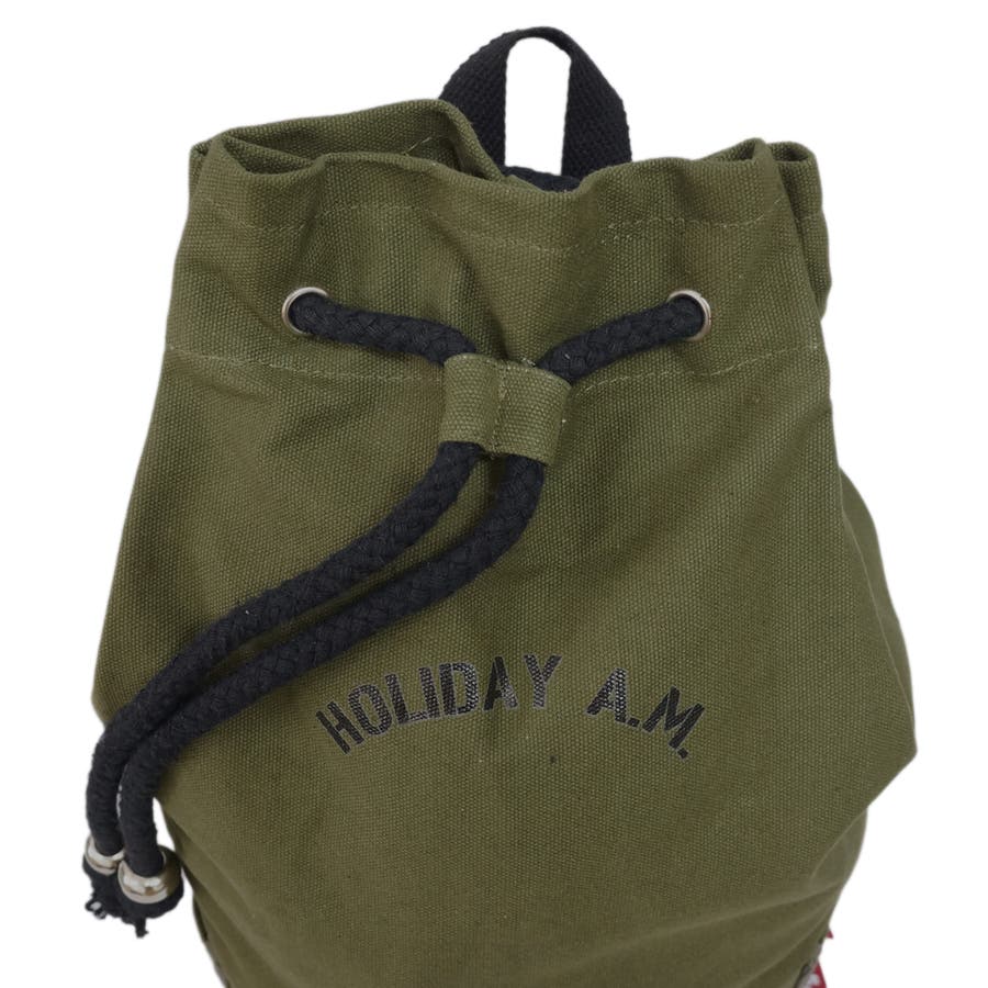 ステンシル風の字体でHOLIDAY A.M.ホリデーエーエムのロゴプリントをしています。