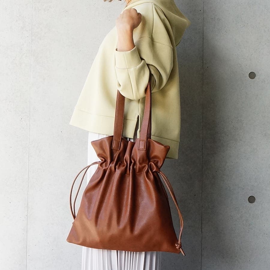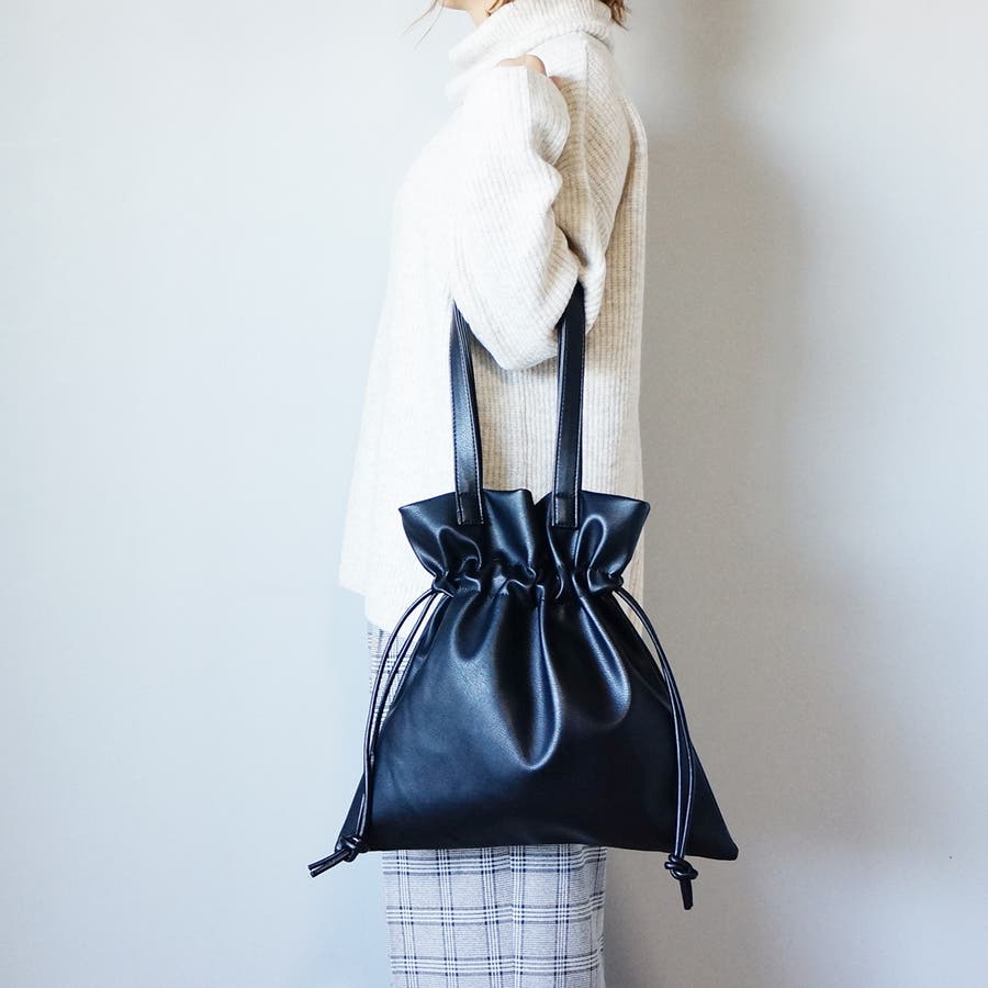 バッグ,巾着,きんちゃく,巾着型,トート,エコレザー,フェイクレザー,合皮,合成皮革,エコバッグ,通勤,通学,しぼり,かわいい,おしゃれ,メンズ,レディース,旅行,トラベル,HolidayA.M.,ホリデーエーエム
