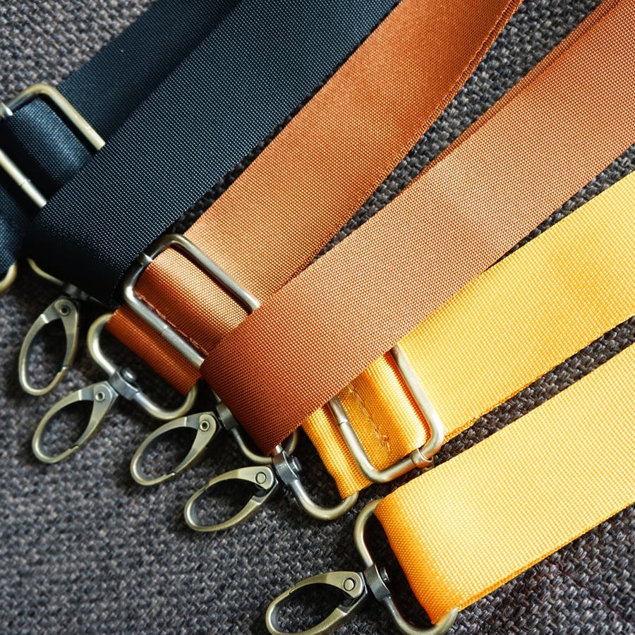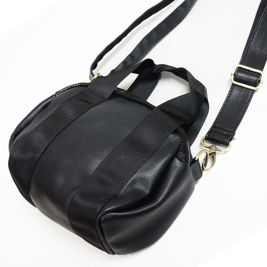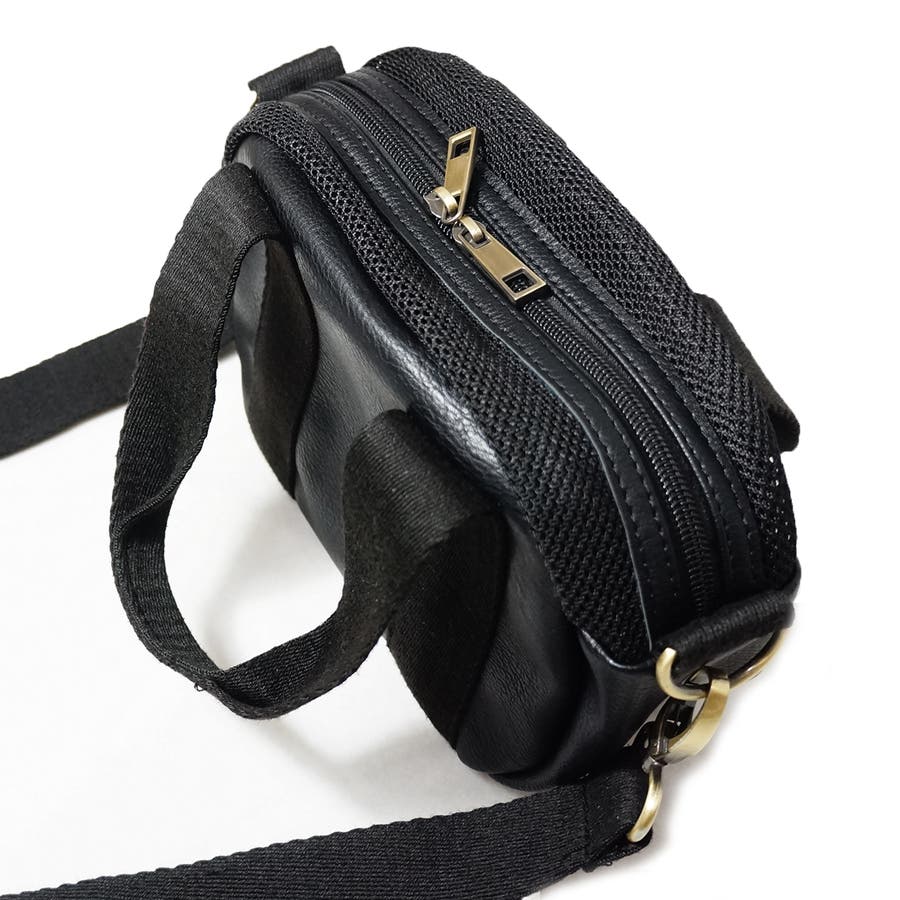 ショルダーは合皮が縫い付けてあるものと無いものの2本付き。服装や重さで付け替えることができます。