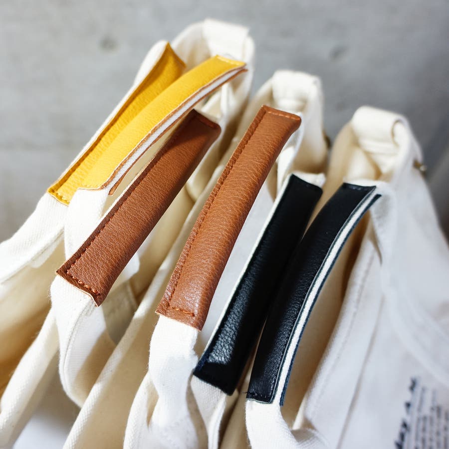 持ち手のフェイクレザーとロゴデザインは落ち着いたマットな色を選びランクアップの仕上がりになっています。