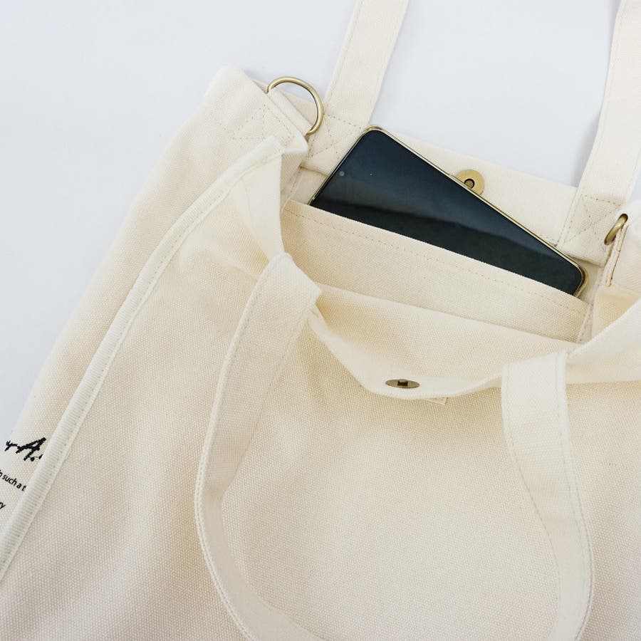 トートバッグ、ショルダーバッグで使える2WAYタイプ。