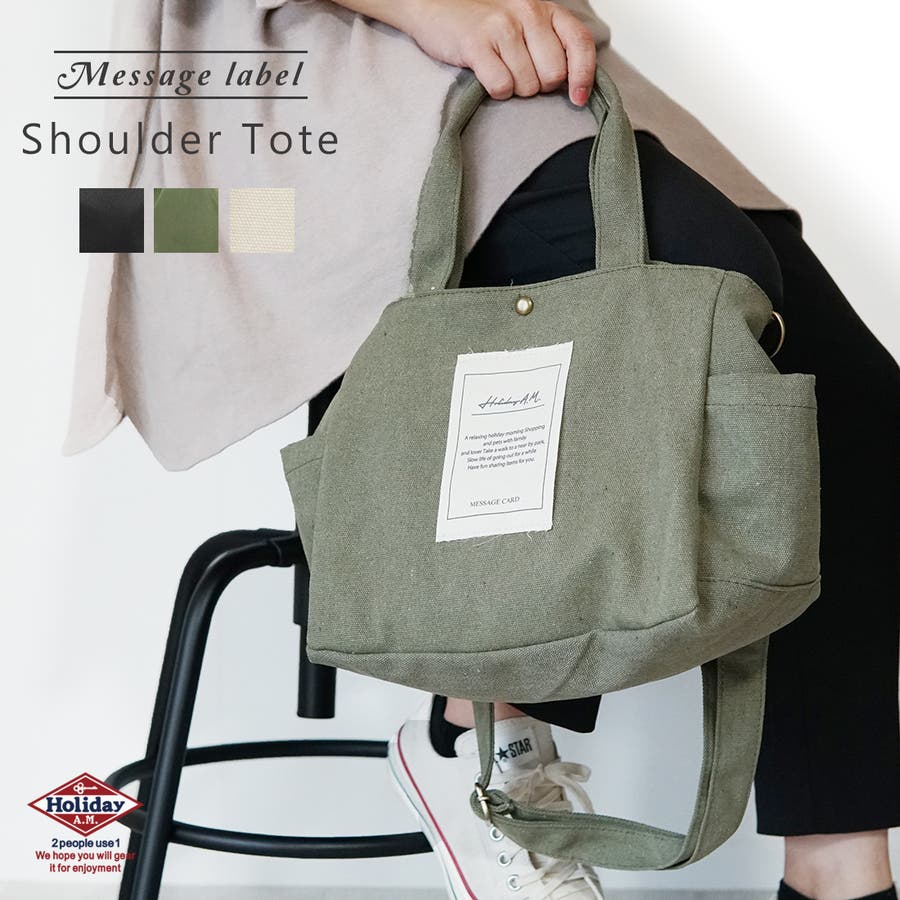バッグ ショルダーバッグ メッセージラベル キャンバスバッグ
