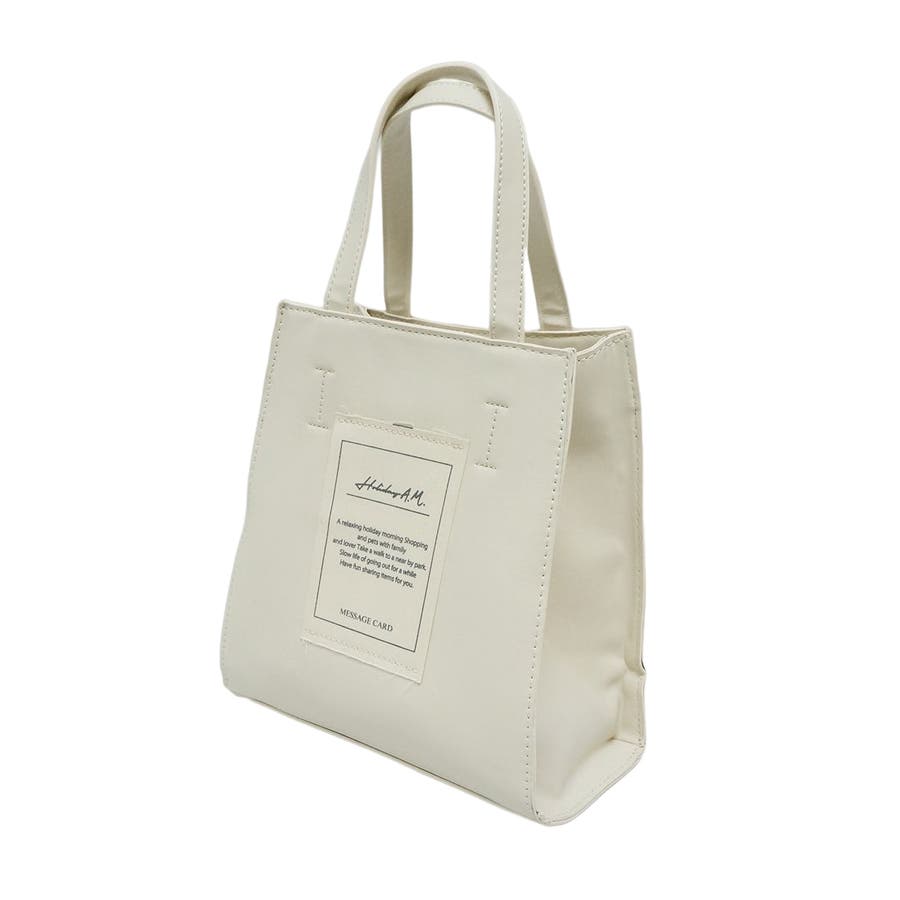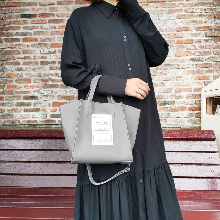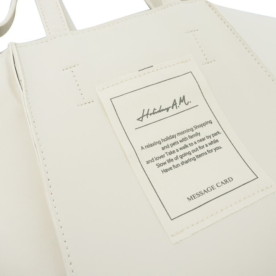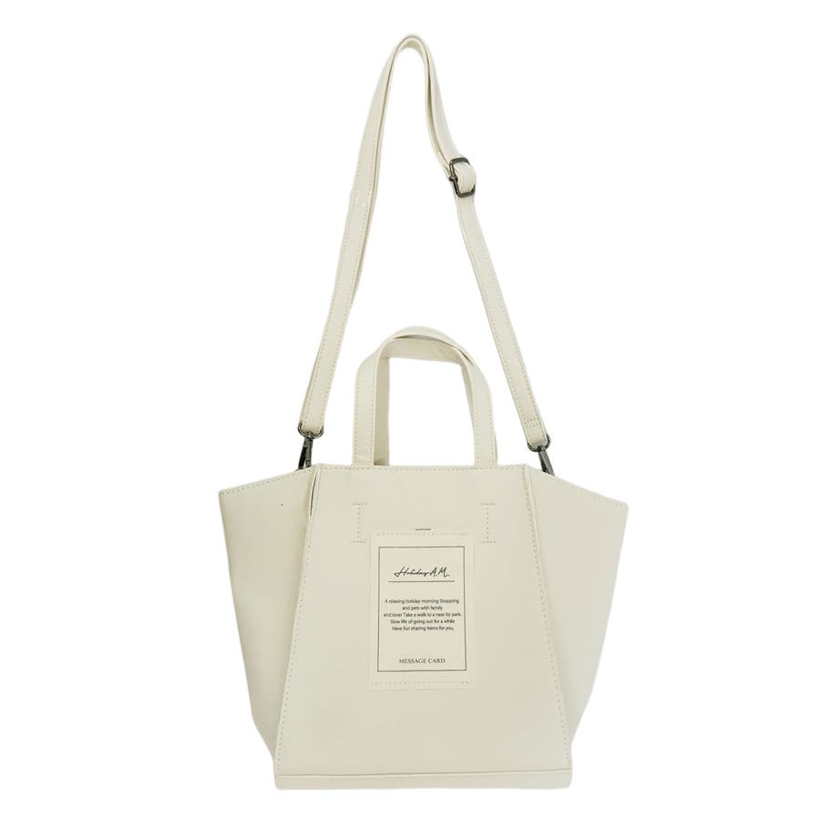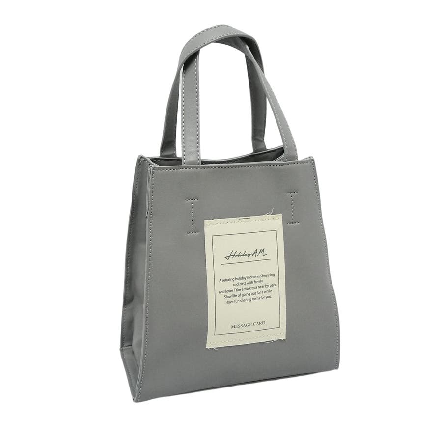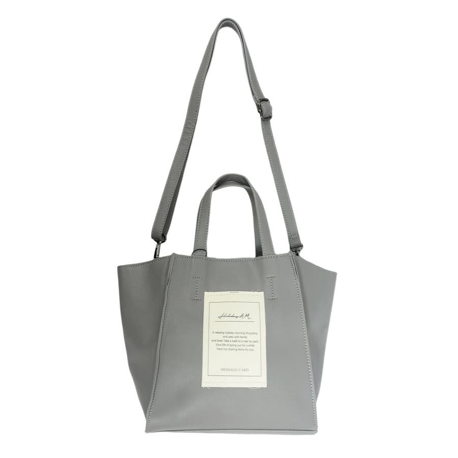 デザインは前面のメッセージラベルがアクセントになって高見えするバッグです。