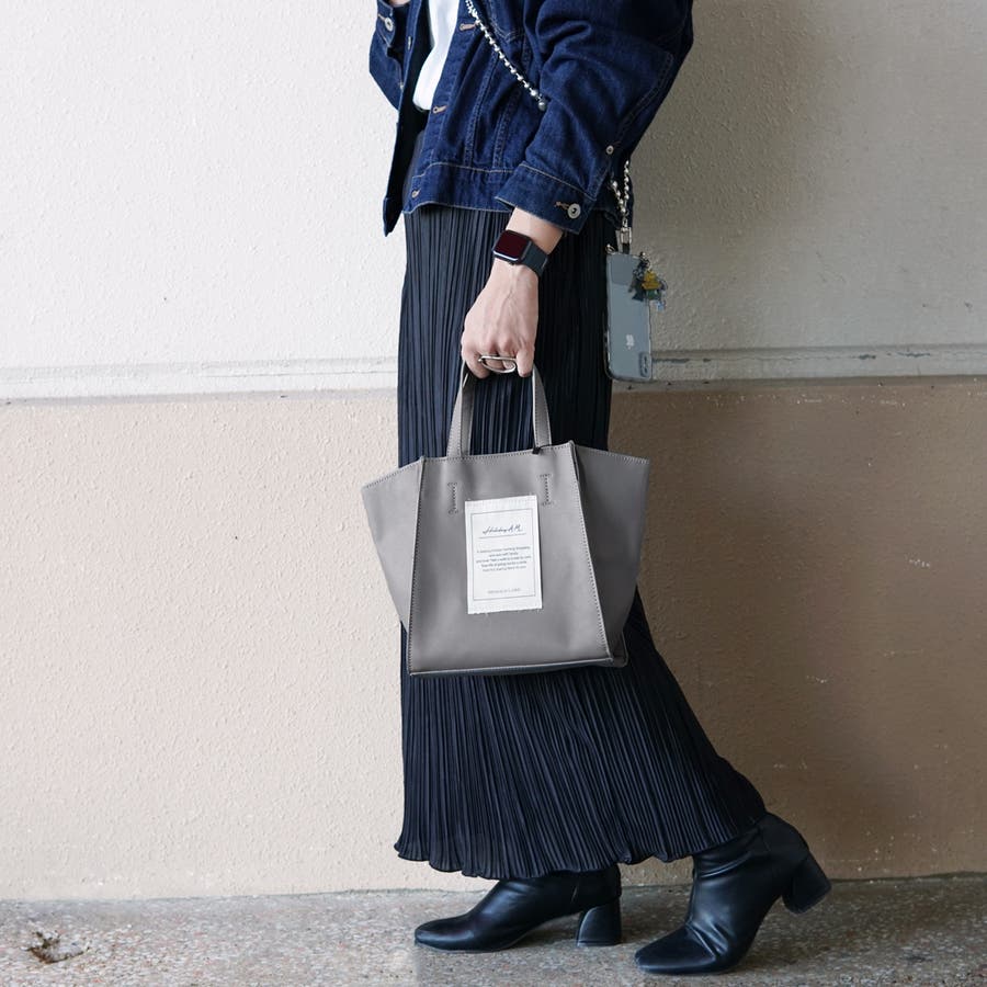 荷物が少ないときには両サイドを内側に折り込んで、四角い形のバッグに。印象を変えることができます。