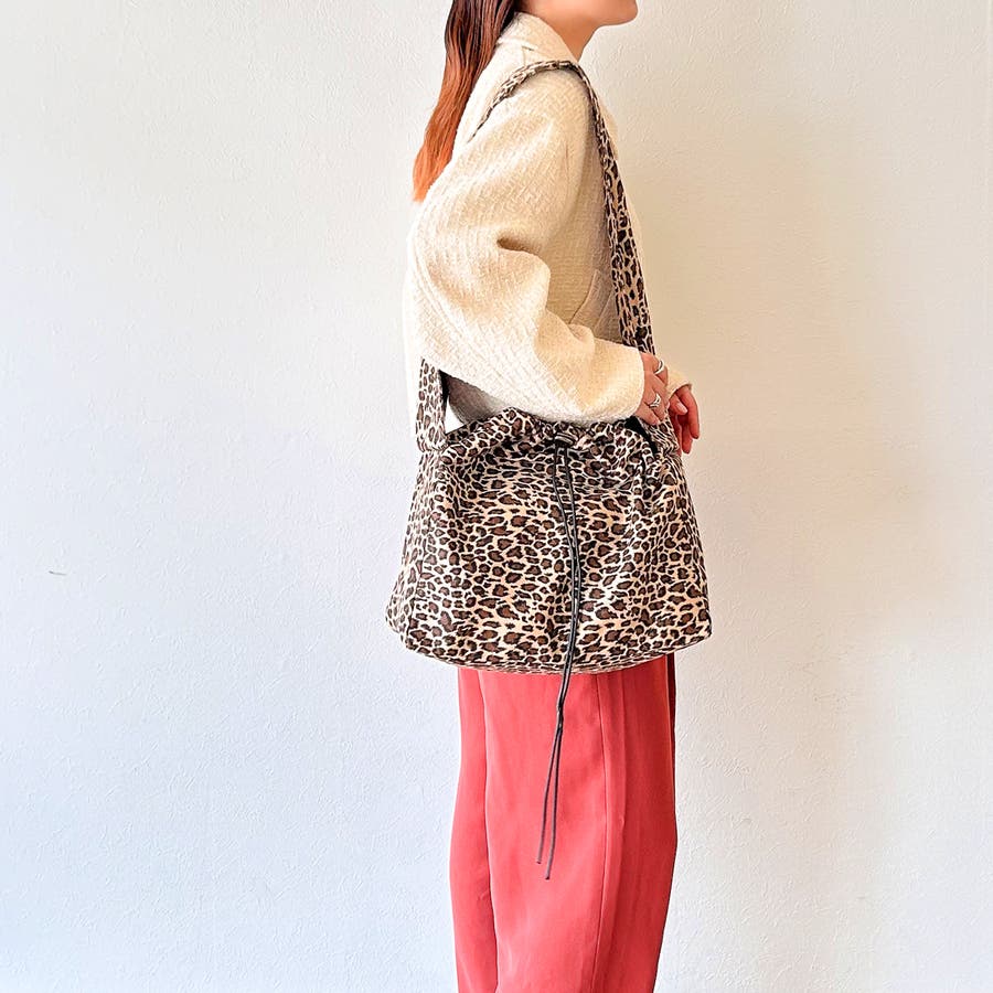 巾着タイプの開閉がお洒落で荷物を簡単に出し入れできます。