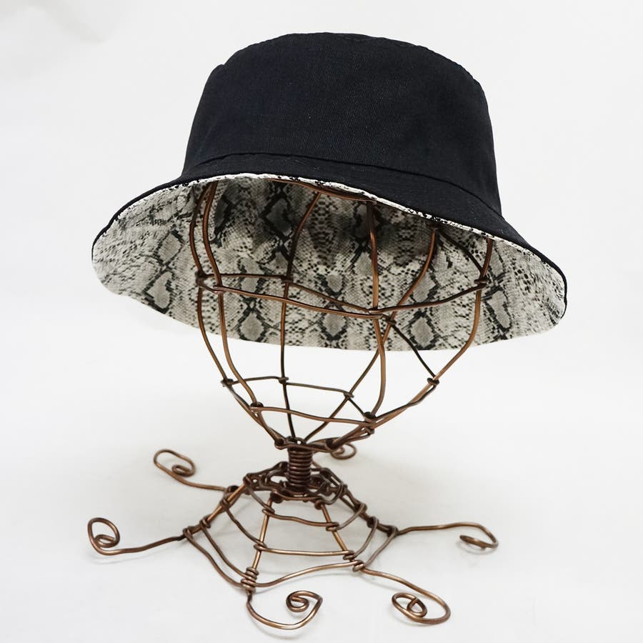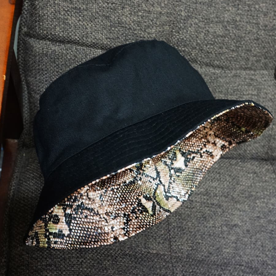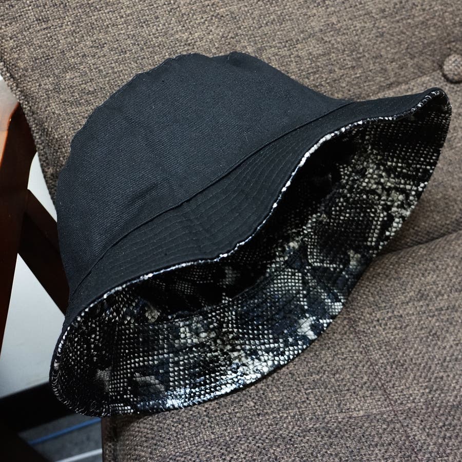 ツバからのぞく異素材の組み合わせがワンランク上のお洒落に見せてくれるリバーシブル仕様。その日のコーデに合わせて無地ブラック・パイソン柄を楽しむことができます。