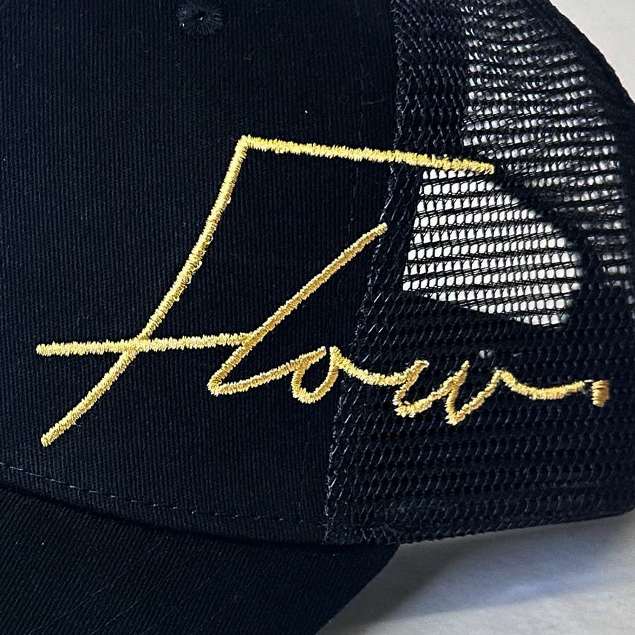 大きめのロゴですが細めの刺繍でスタイリッシュな印象。