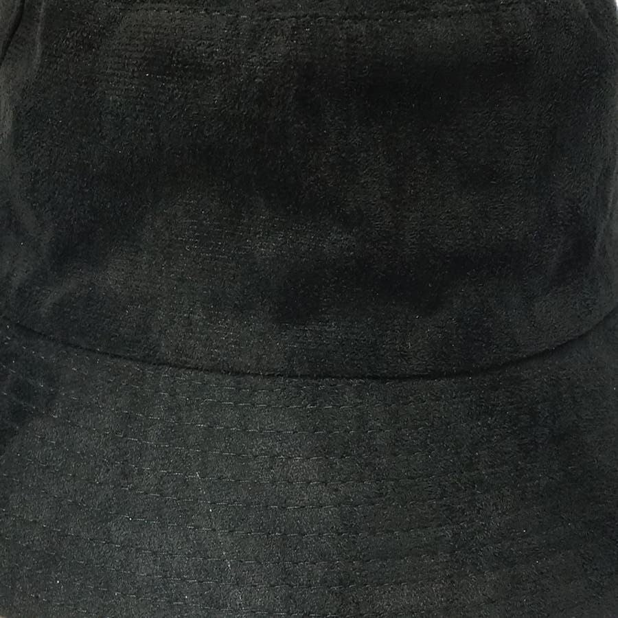 このハットはリバーシブルで、無地ブラックとフェイクスウェードの2通りを楽しめます。