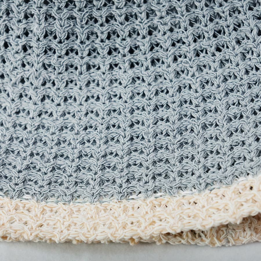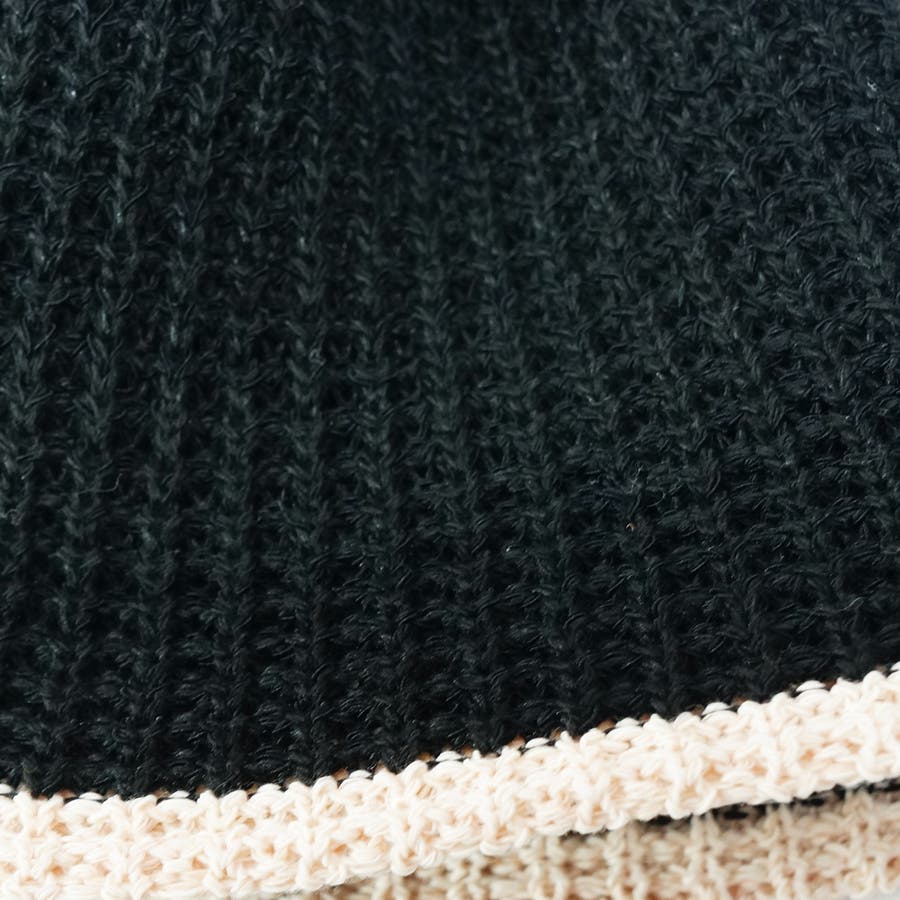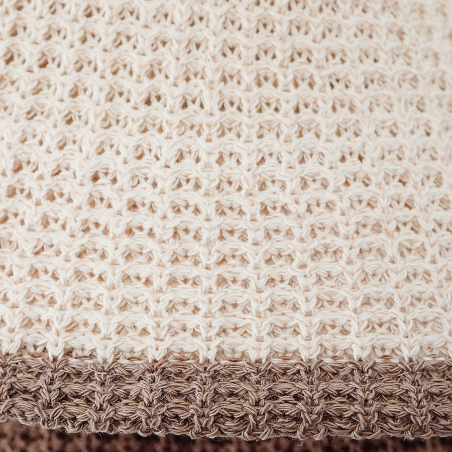 模様は編みに表情があり、縁取りのラインがお洒落なデザインです。