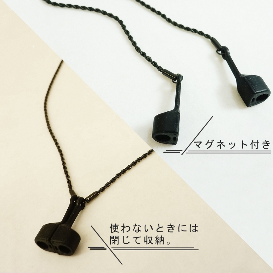| 素材 | サイズ:全長約75cm、ホルダー部分を含む 重さ:約18g 素材:シリコン、マグネット チェーン: 金属 |