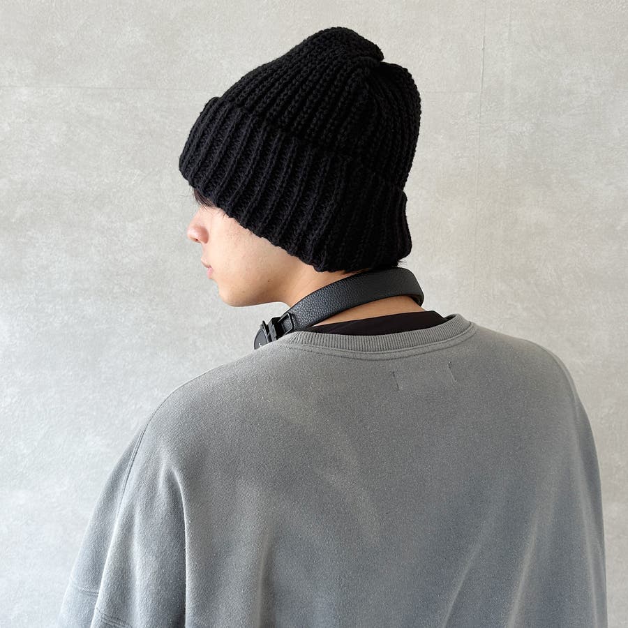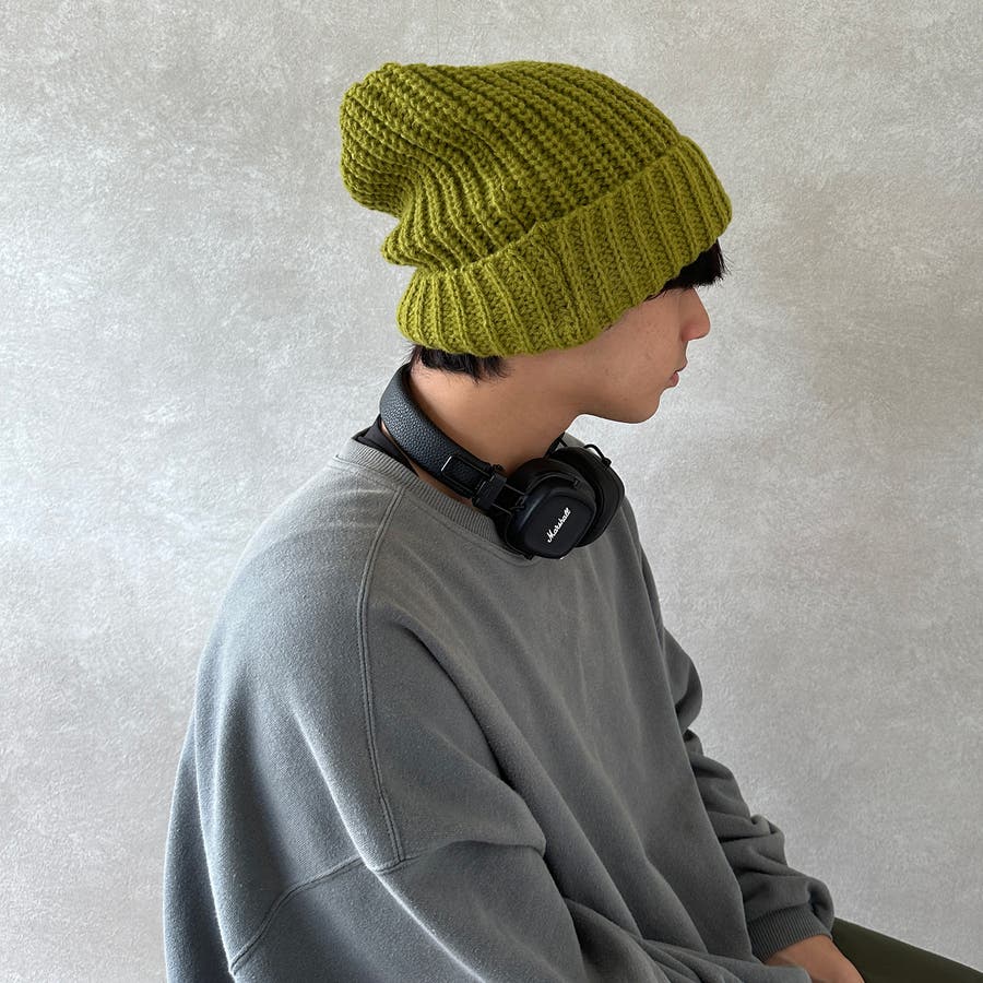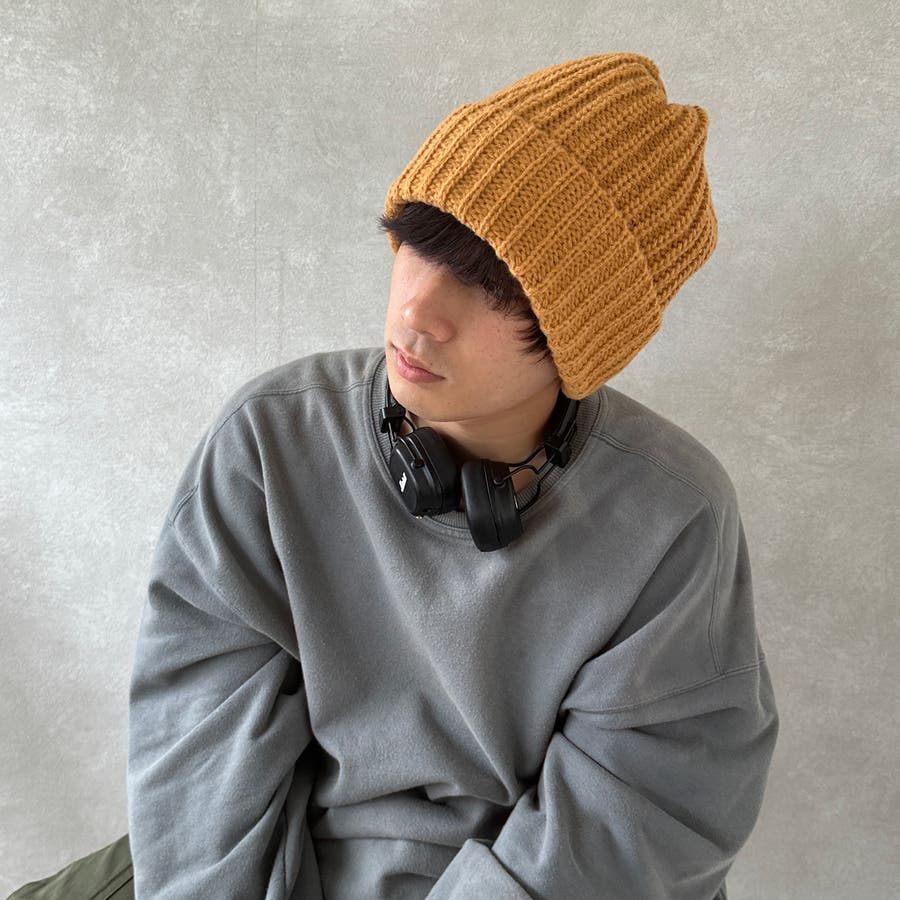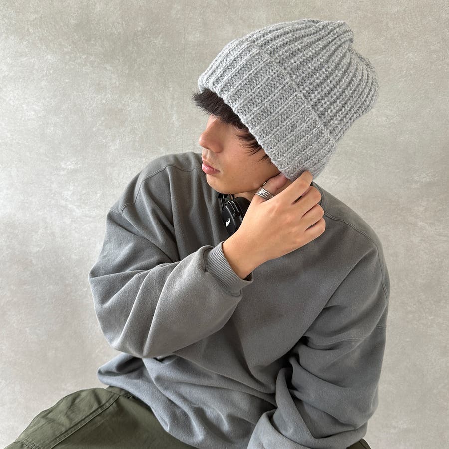大きいサイズでゆったり被れるニット帽。ルーズなスタイルで目深に被ったり、後ろの方を下げたりと可愛いく決まります。