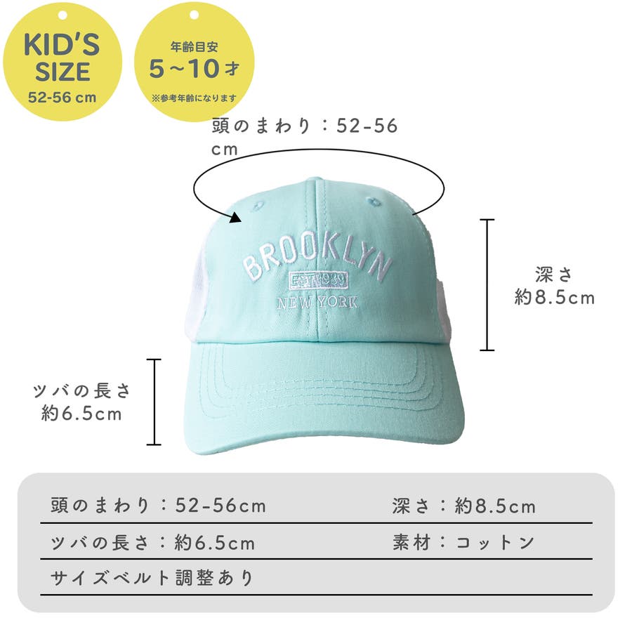 サイズ:52-56cm/ベルト調節、目安年齢5歳から10歳、素材:コットン