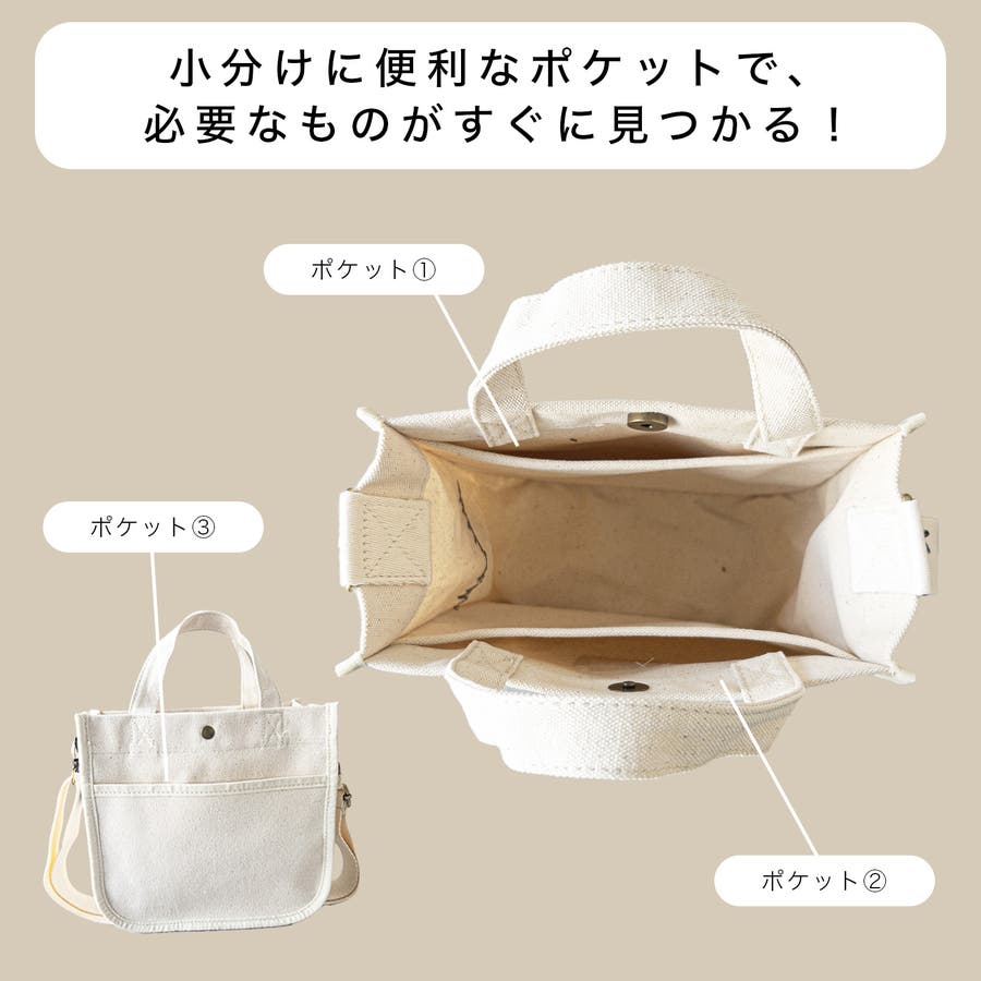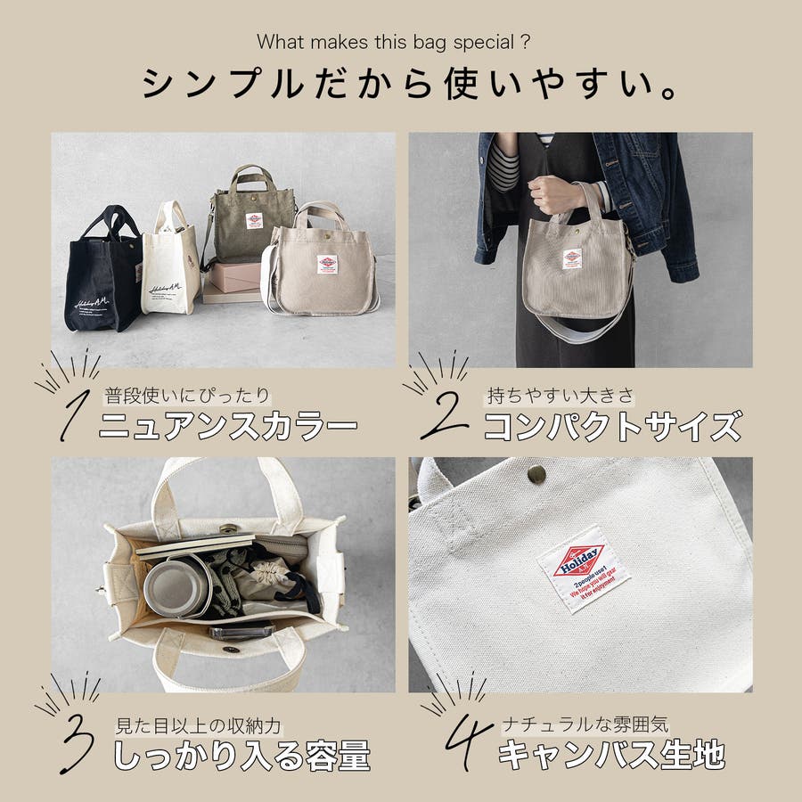トートバッグ、ショルダーバッグで使える2WAYタイプ。