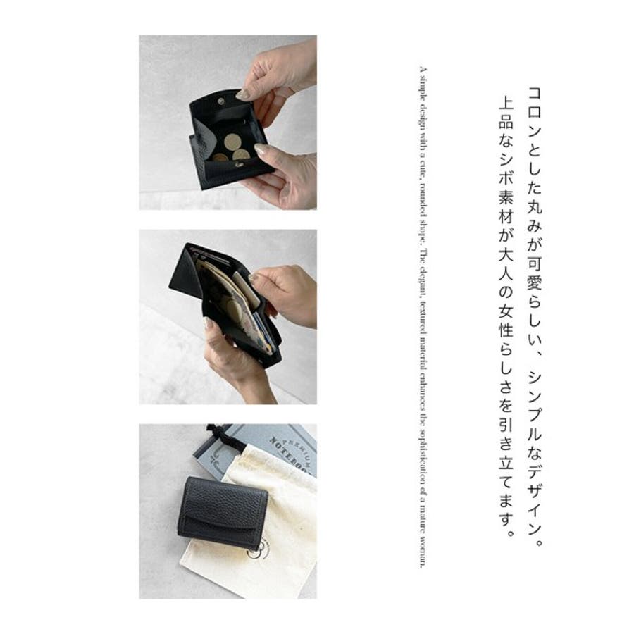 スナップボタンでサッと開閉できる仕様。小銭入れは大きく開き取り出しやすい作りで、フタの裏がポケットになっていて、いつも使用するカードを入れるスペースがあります。小さめの財布ながら大きく開き、収納力もあります。