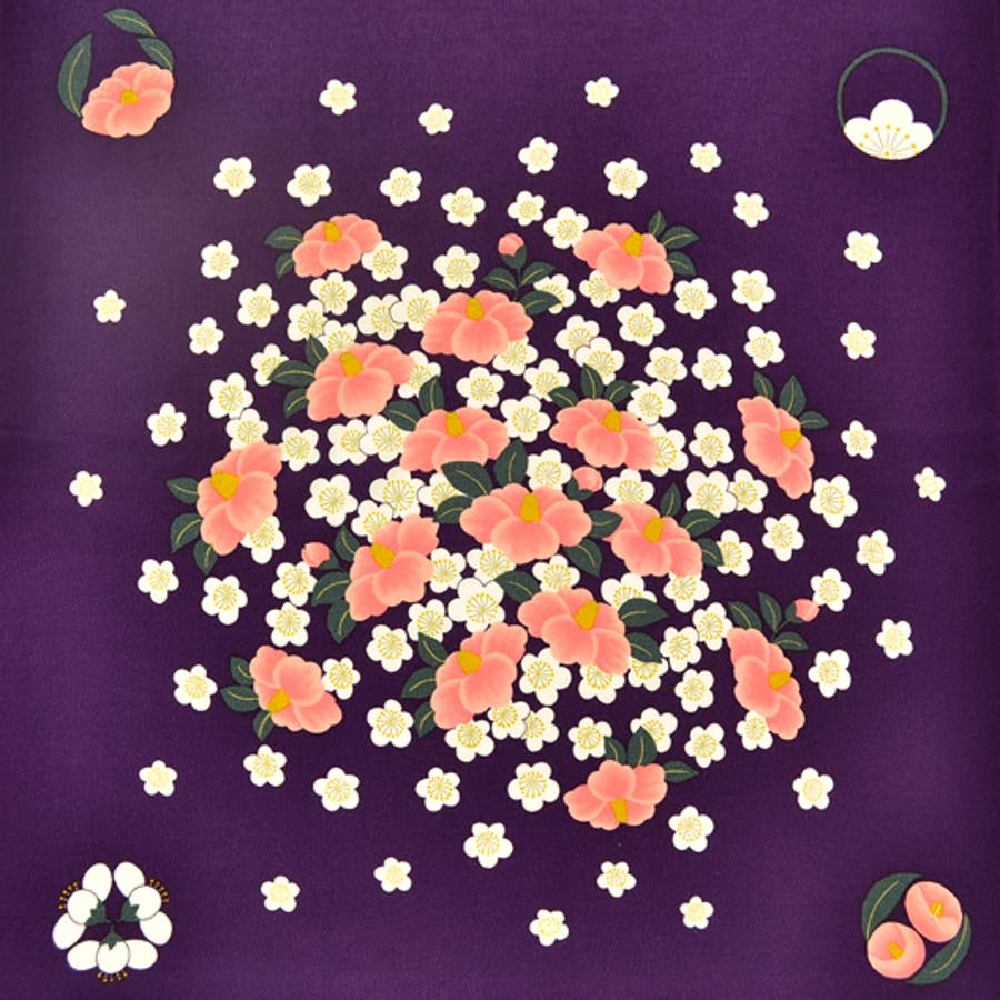 風呂敷 椿と梅柄 豪華 ちりめん 風呂敷 紫