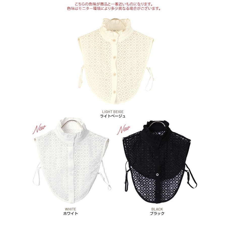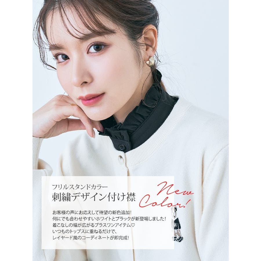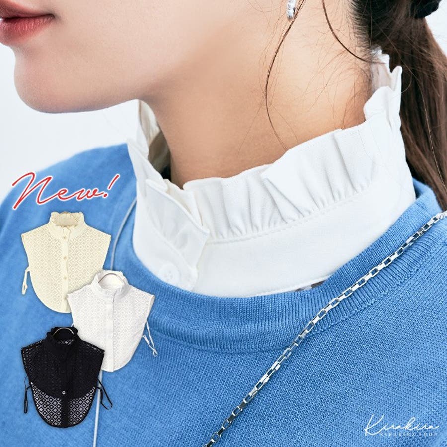 ●全3色!刺繍デザインフリルスタンドカラー付け襟