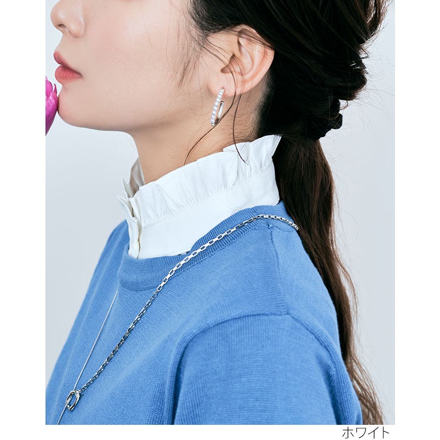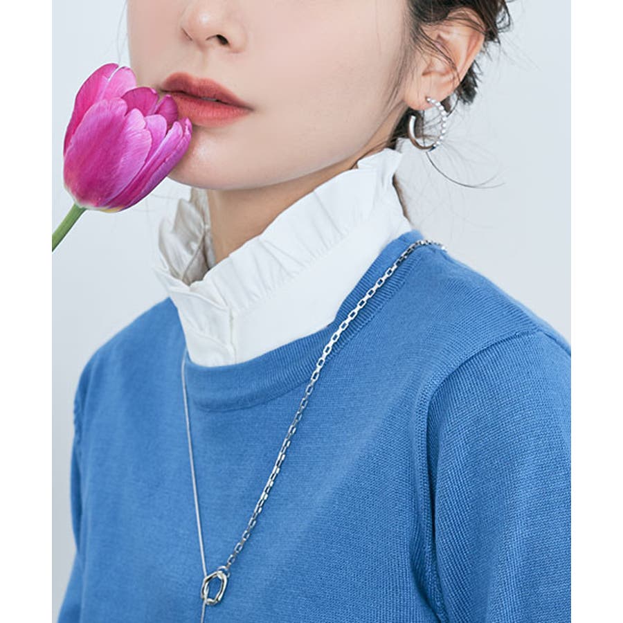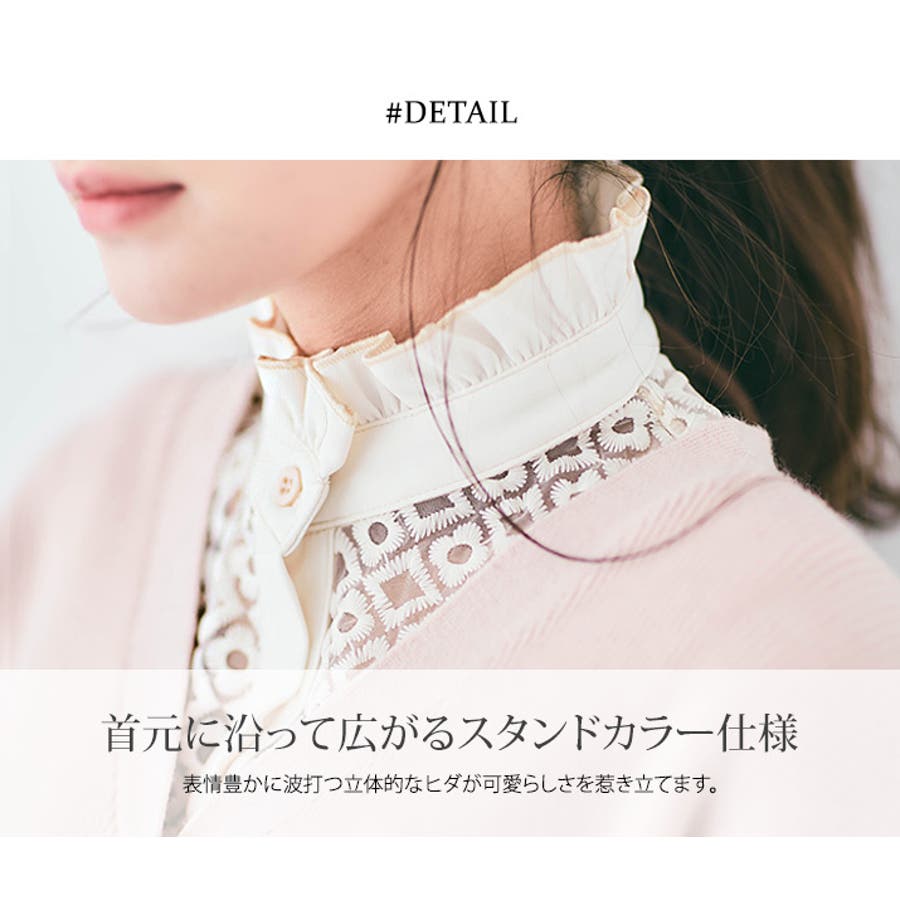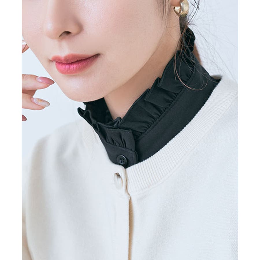 ●首元に沿って広がるスタンドカラー仕様。表情豊かに波打つ立体的なヒダが可愛らしさを惹き立てます。