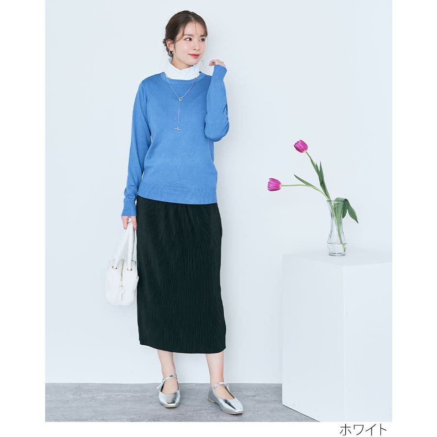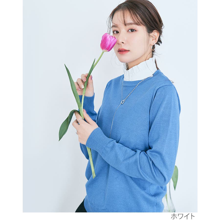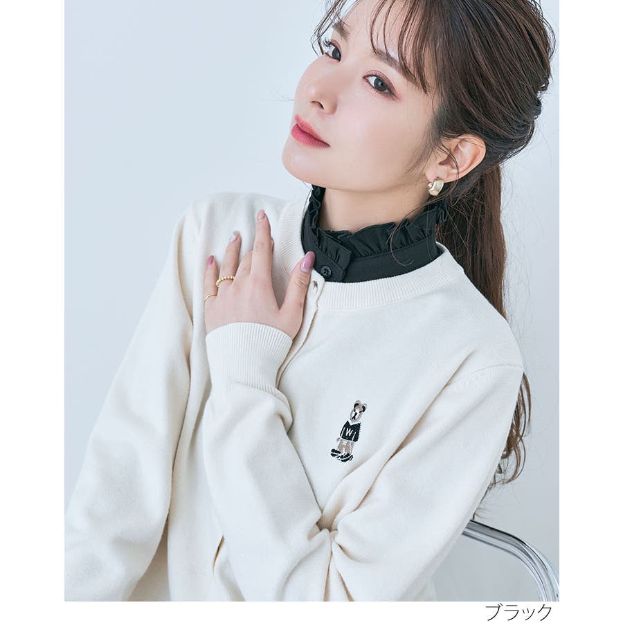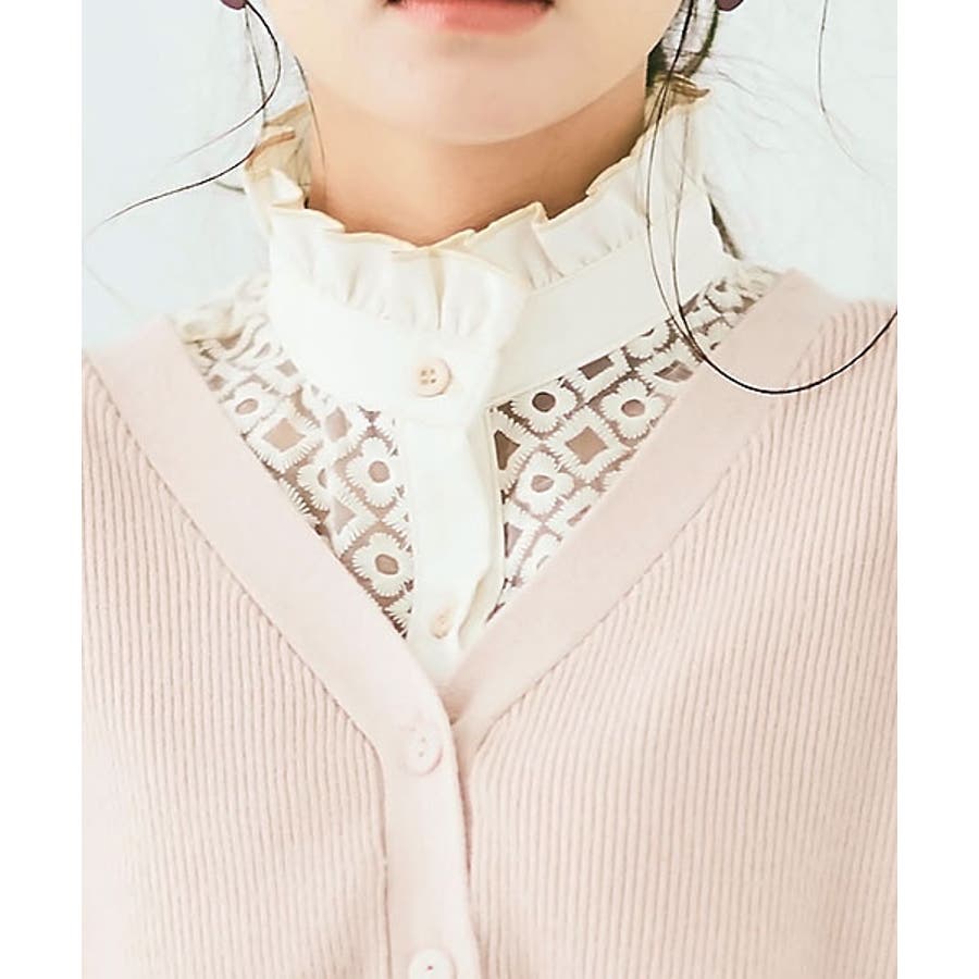 ●首元に沿って広がるスタンドカラー仕様。表情豊かに波打つ立体的なヒダが可愛らしさを惹き立てます。