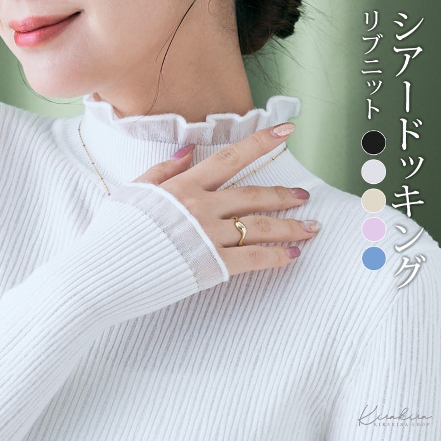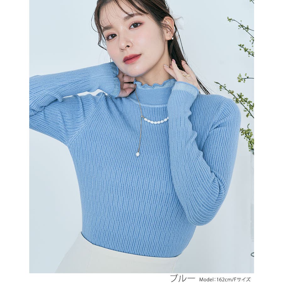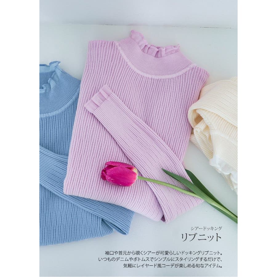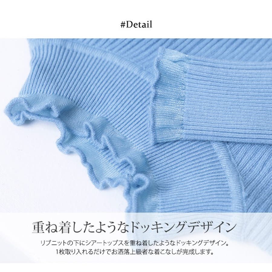 ●袖口や首元から覗くシアーが可愛らしいドッキングリブニット。