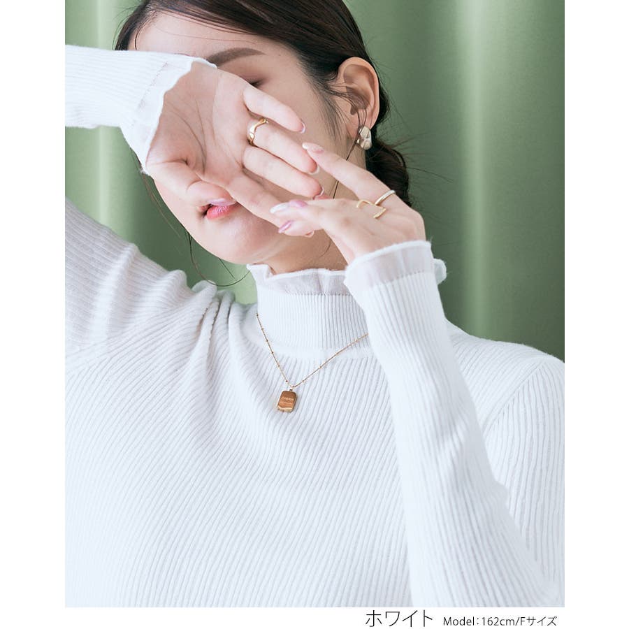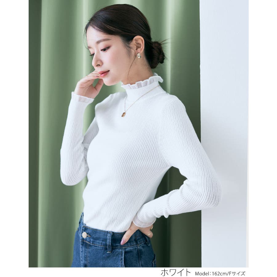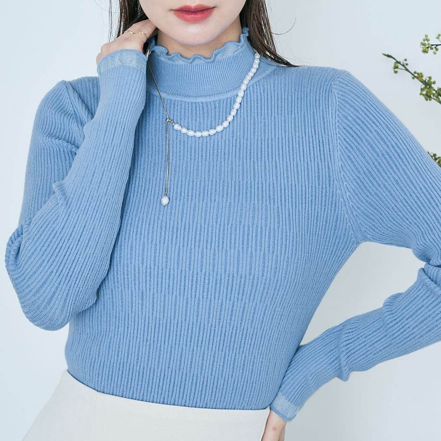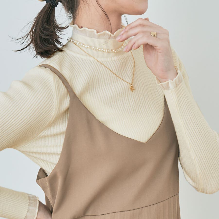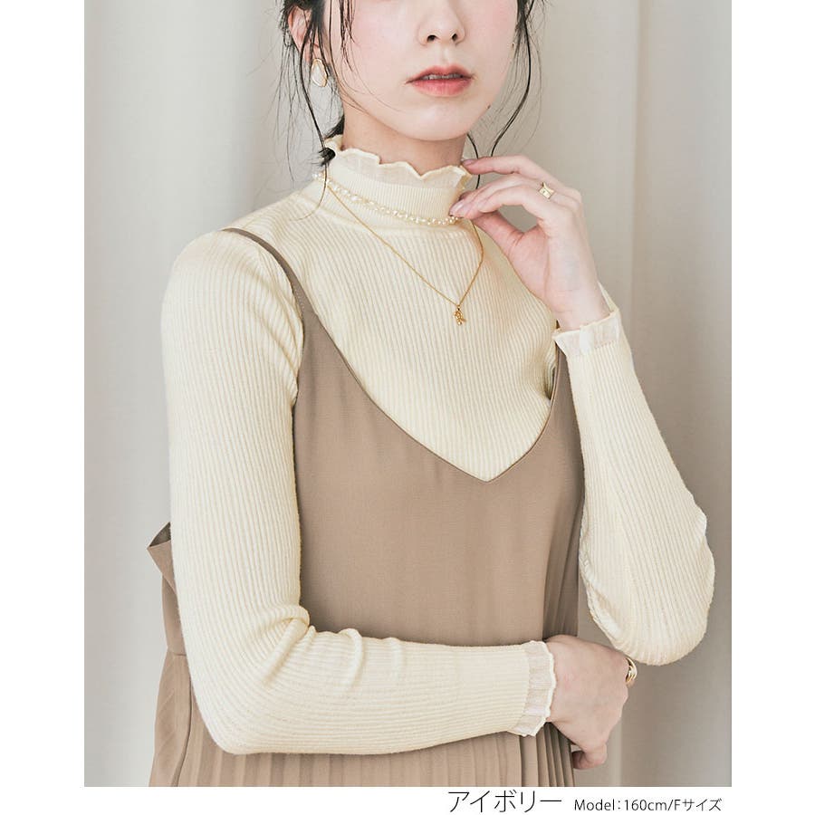 ●袖口や首元から覗くシアーが可愛らしいドッキングリブニット。