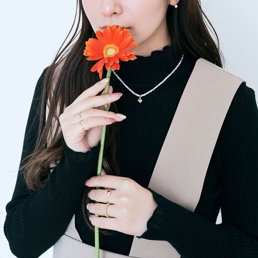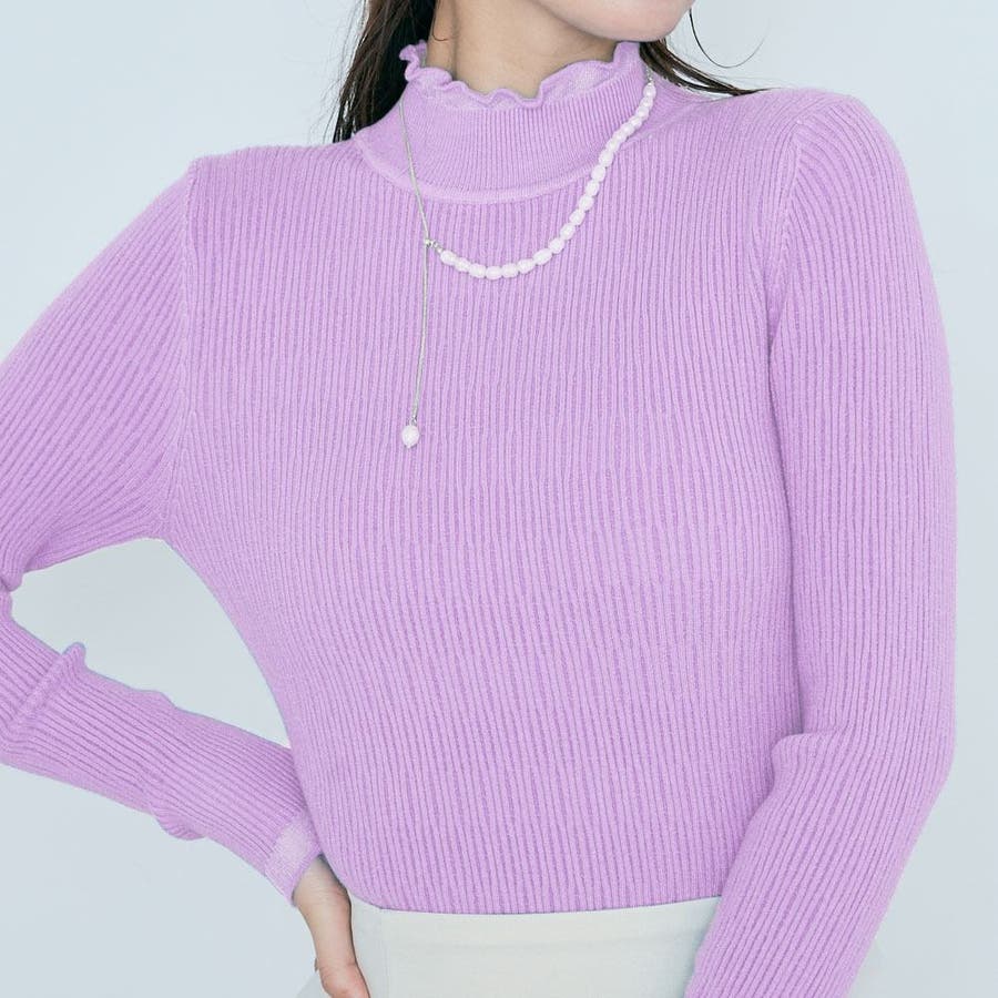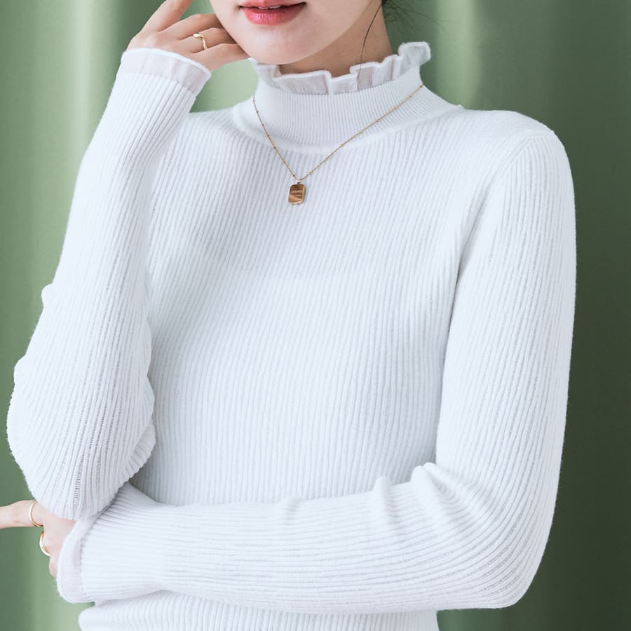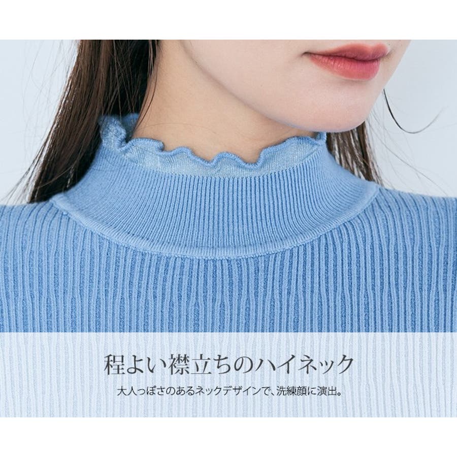 ●程よい襟立ちのハイネック。大人っぽさのあるネックデザインで、洗練顔に演出。