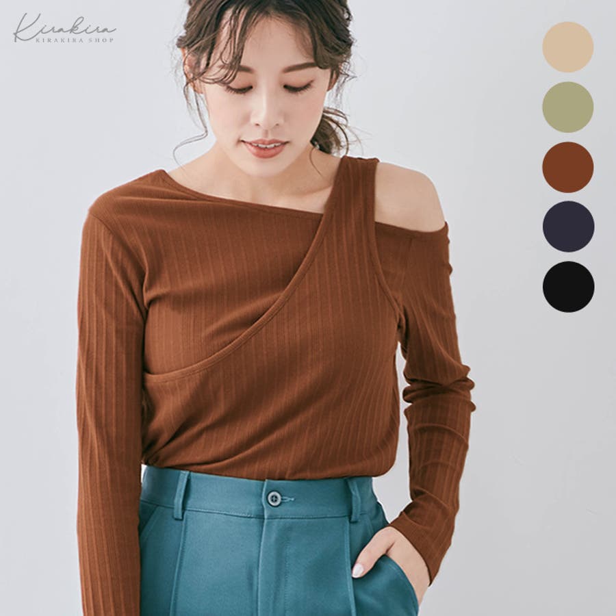 ワンショルダーレイヤードリブカットソー レイヤードトップス ロンT