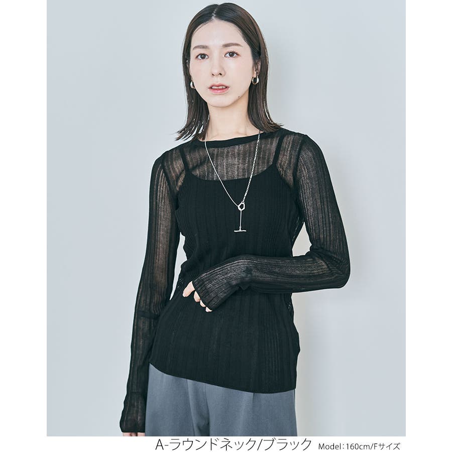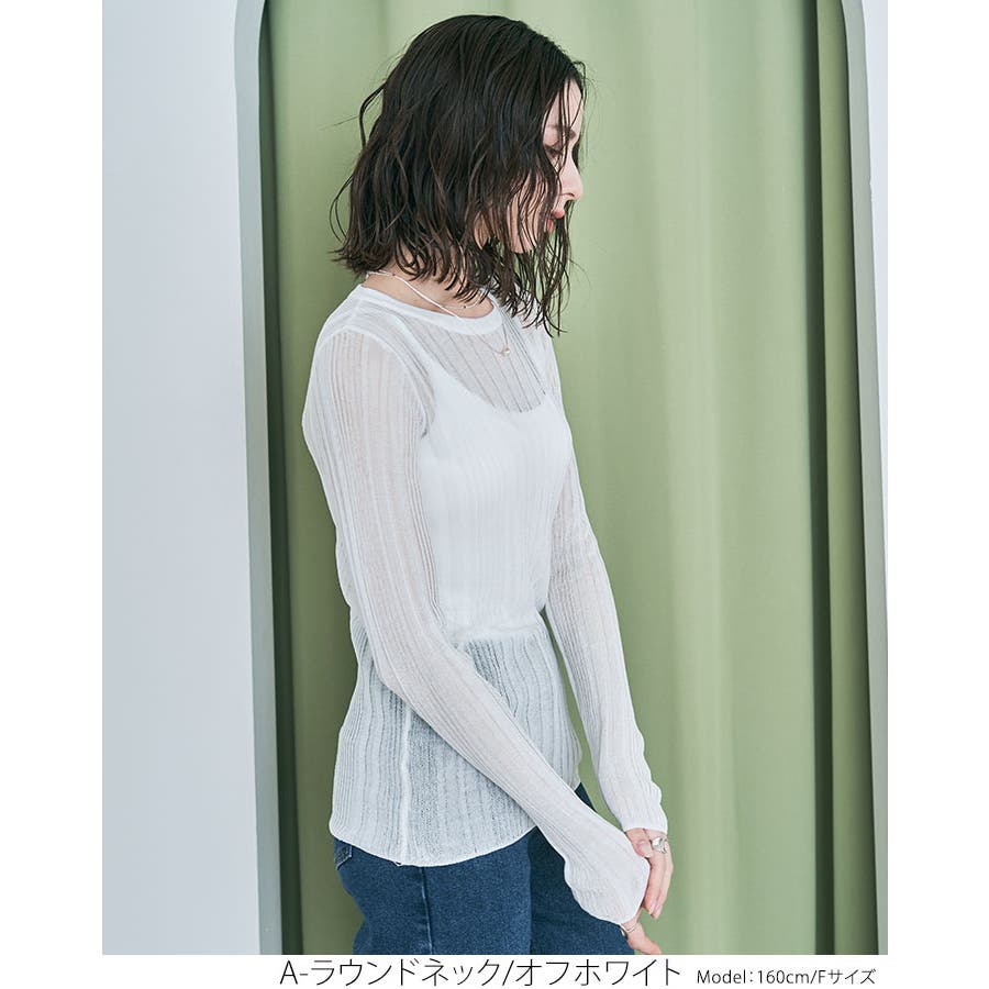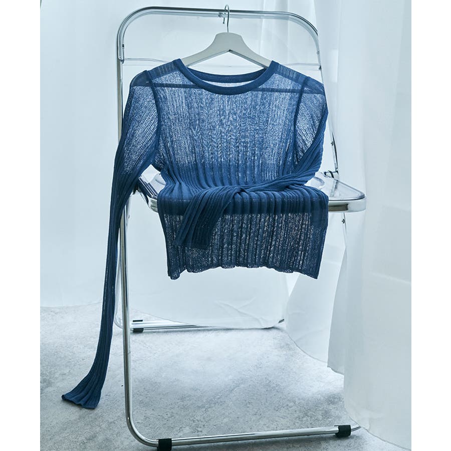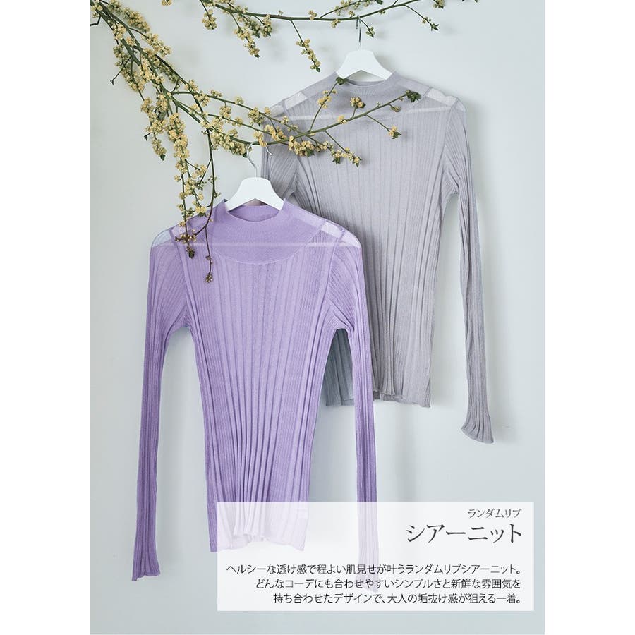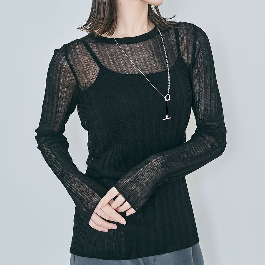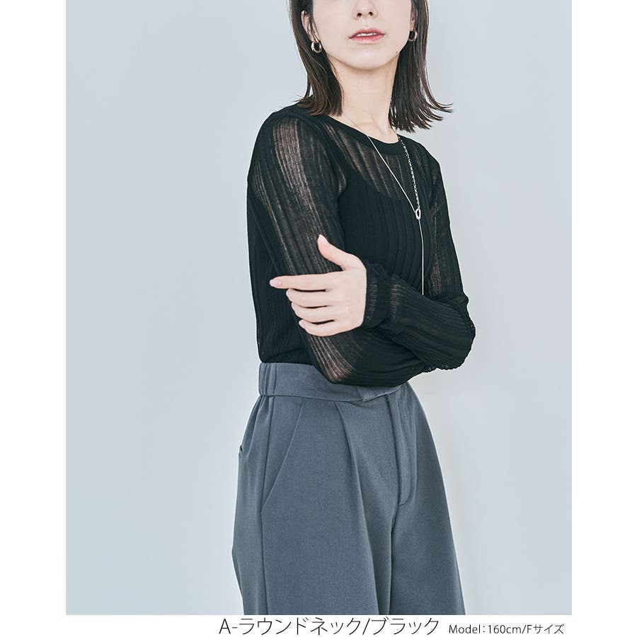 ●ヘルシーな透け感で程よい肌見せが叶うランダムリブシアーニット。