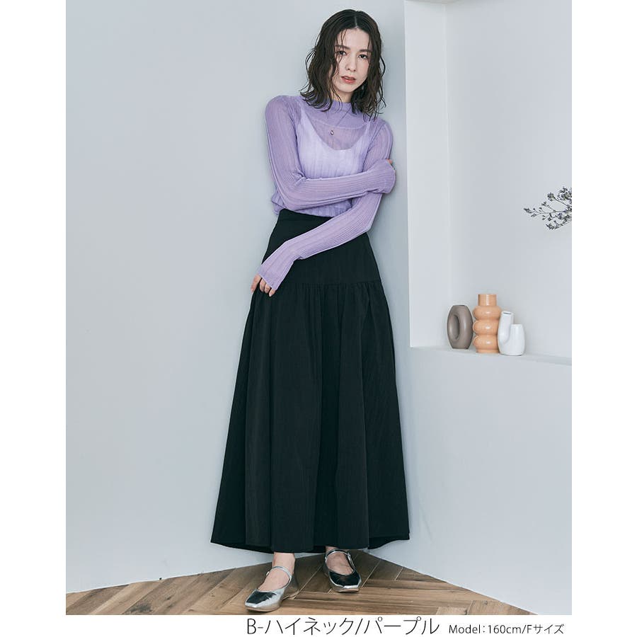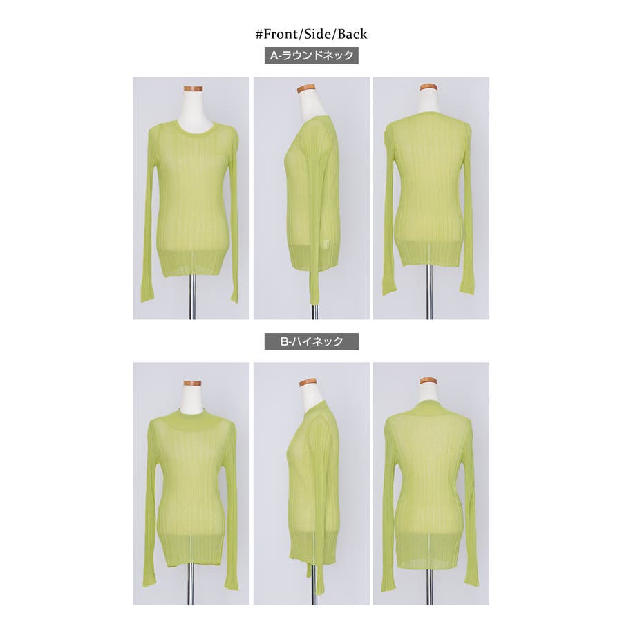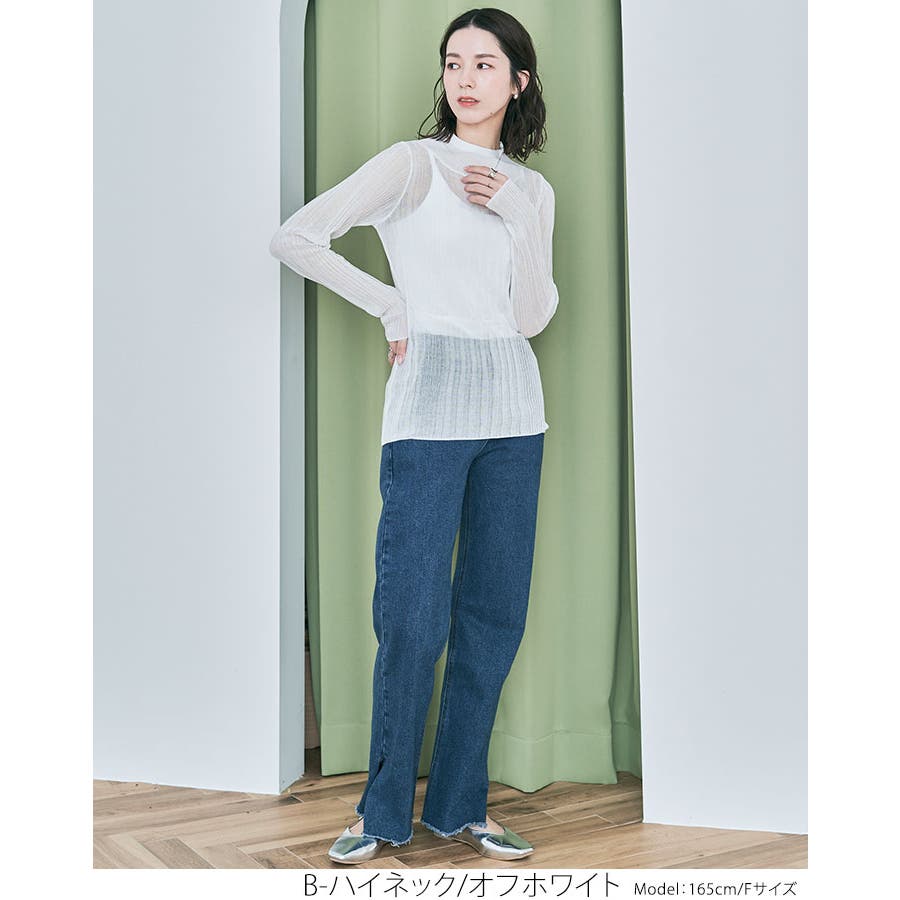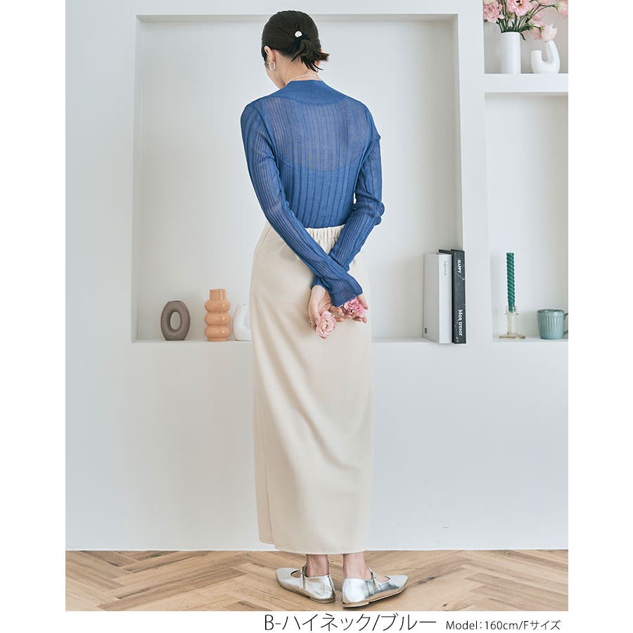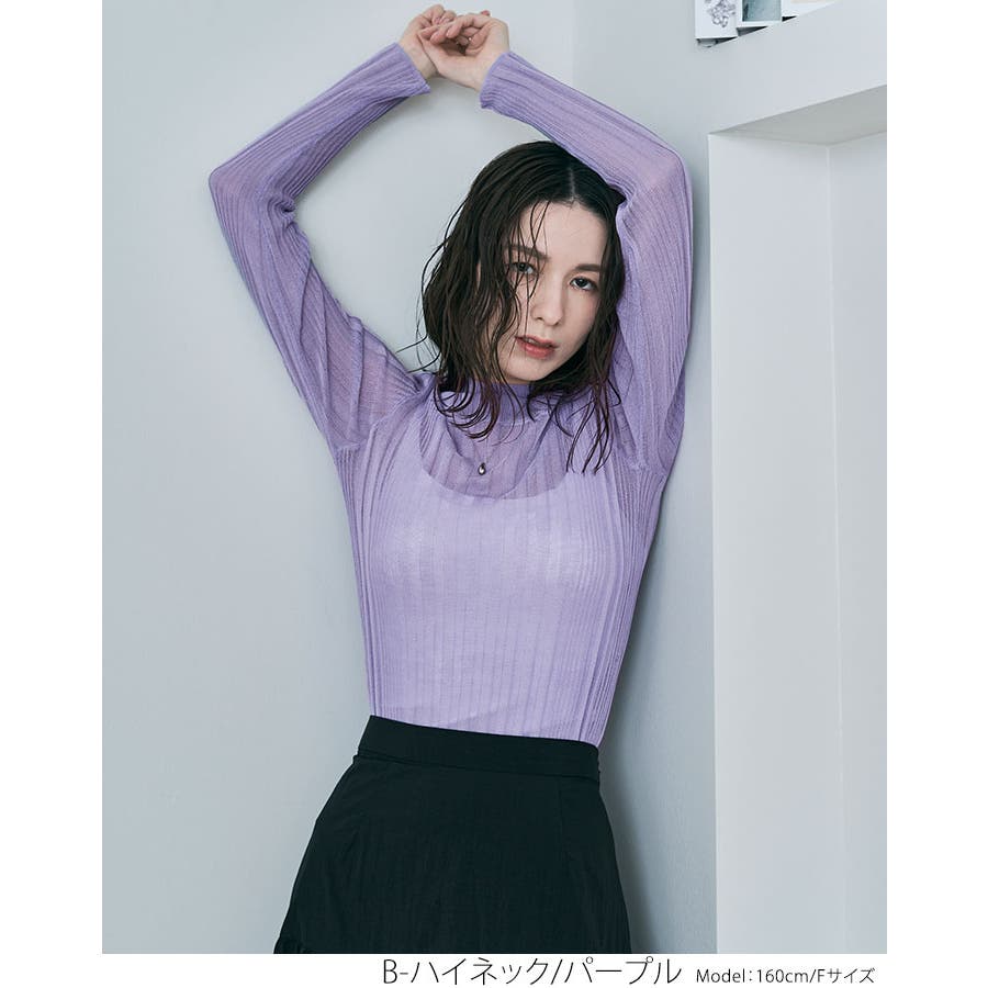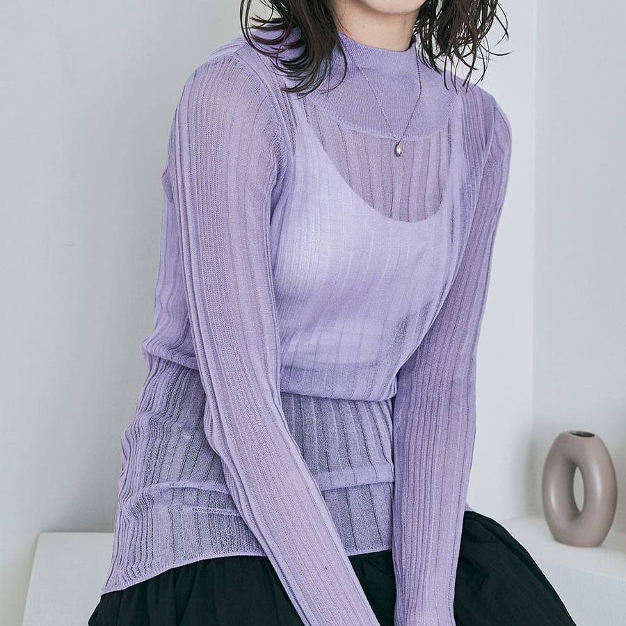 ●ヘルシーな透け感で程よい肌見せが叶うランダムリブシアーニット。
