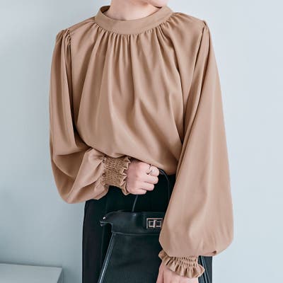 スタンドカラーギャザーブラウス 2サイズ シャツ