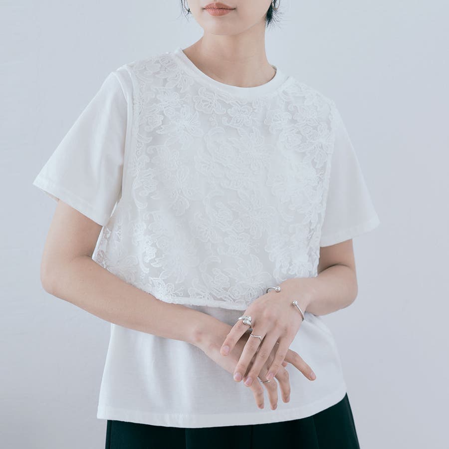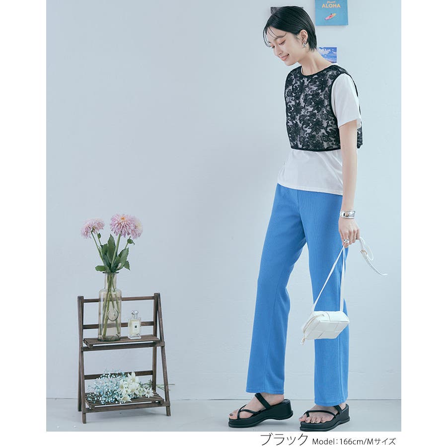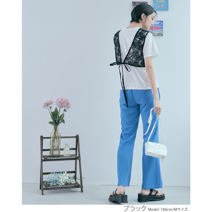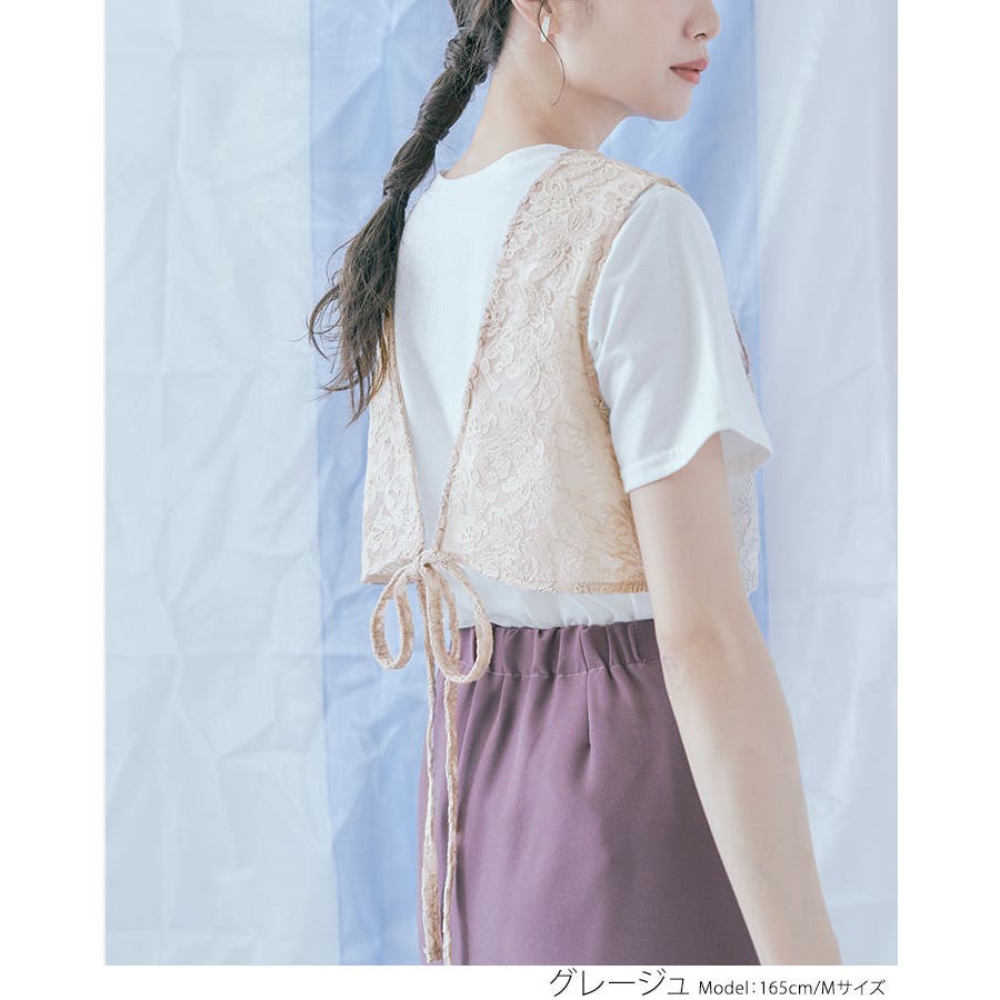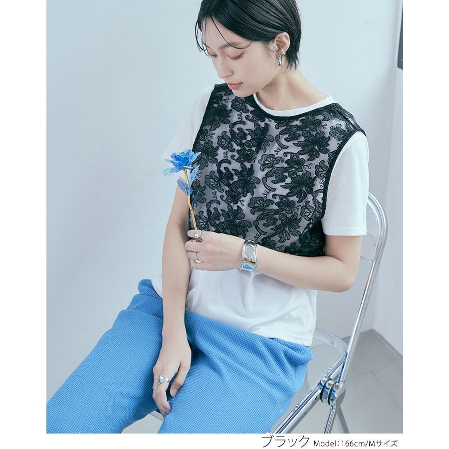 ●ビスチェ:繊細な花柄刺繍と優しい透け感が魅力のメッシュレース。軽量で重ね着していても負担がなく、汗ばむ夏も快適。