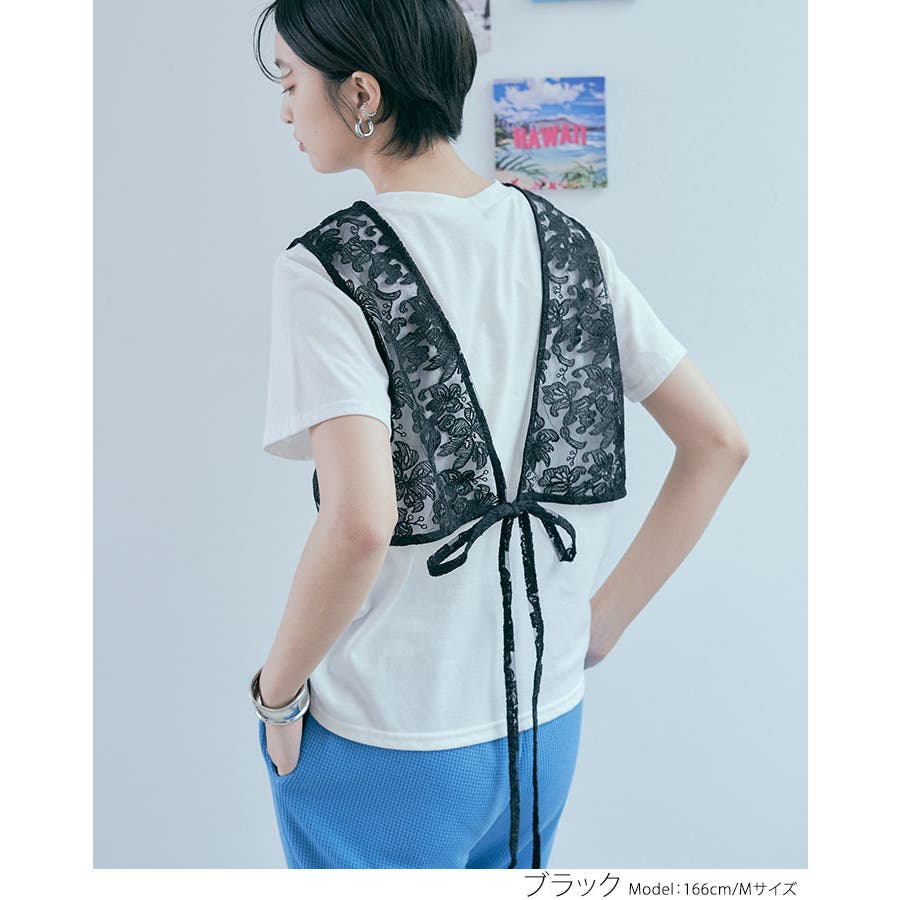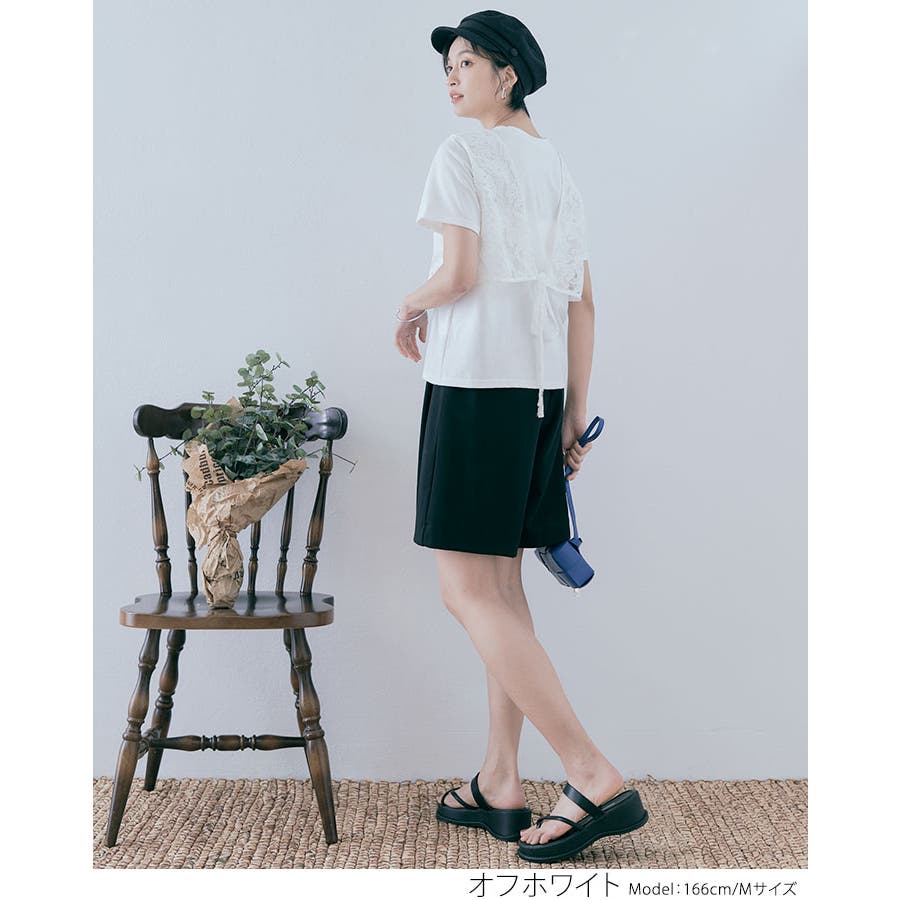 ●バックVネック&リボンが抜け感を与え、後ろ姿までこなれた印象に。