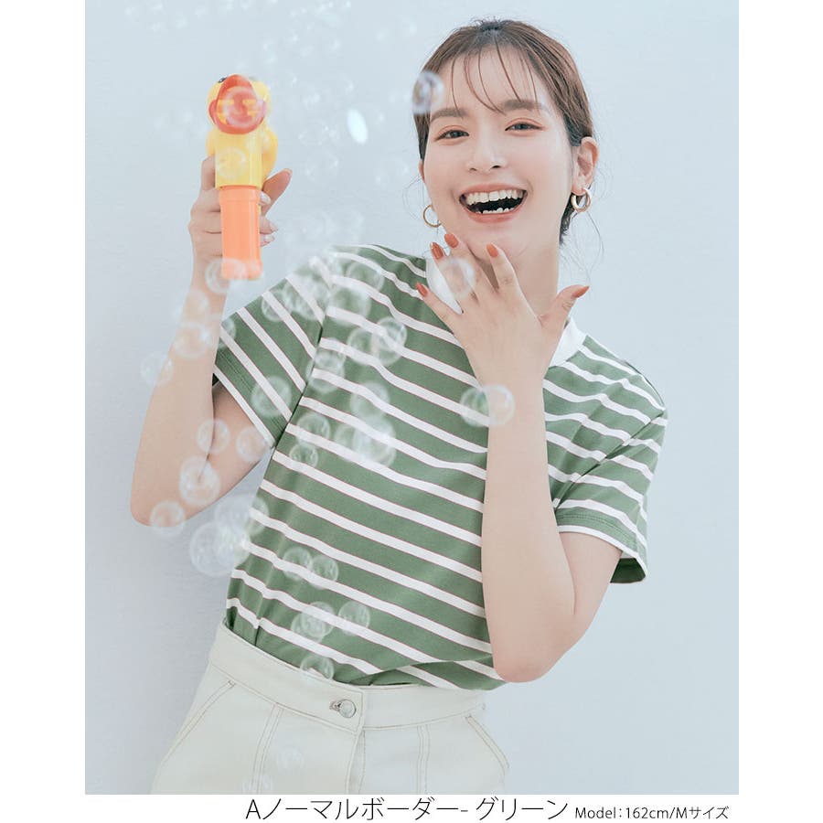投稿日:2022.07.18さん (40代 / 女性 / 身長155~160cm / 体重45~49kg)購入アイテム:サイズ ワンサイズ(Mサイズ)カラー Aノーマルボーダー- グリーンいつものトップスサイズ:Mサイズ感:ぴったり - 可愛い