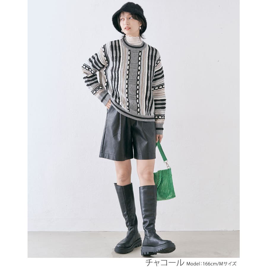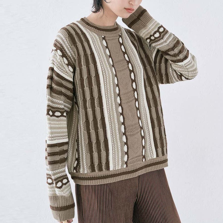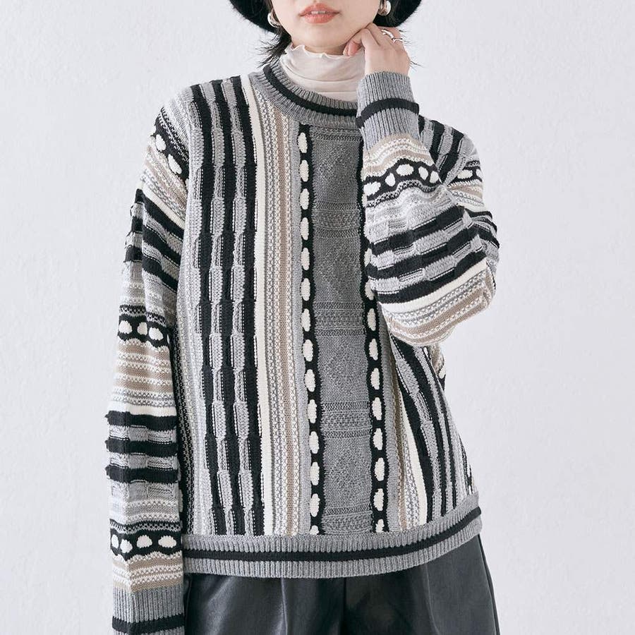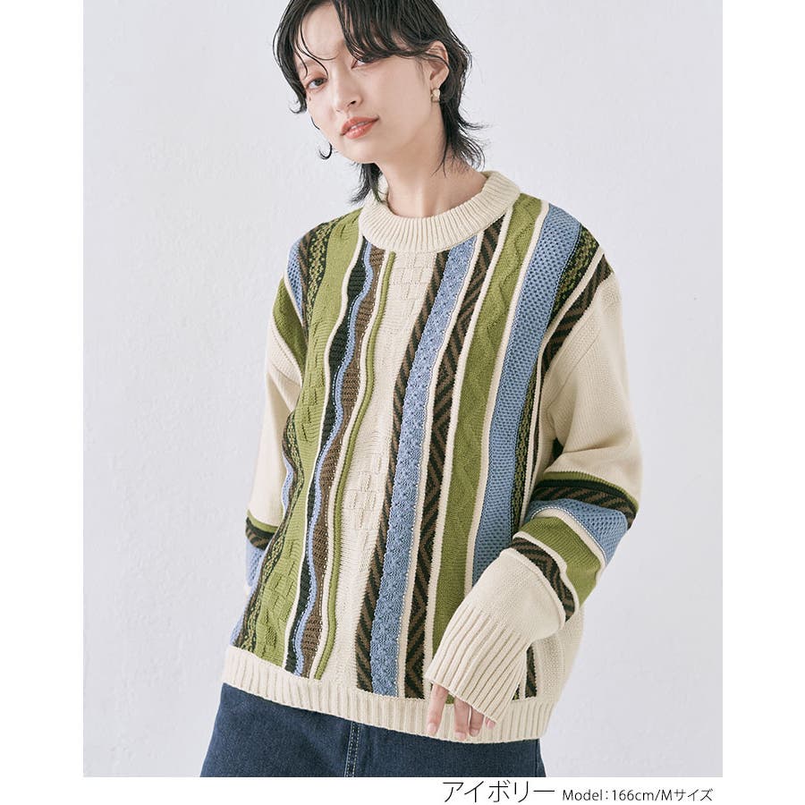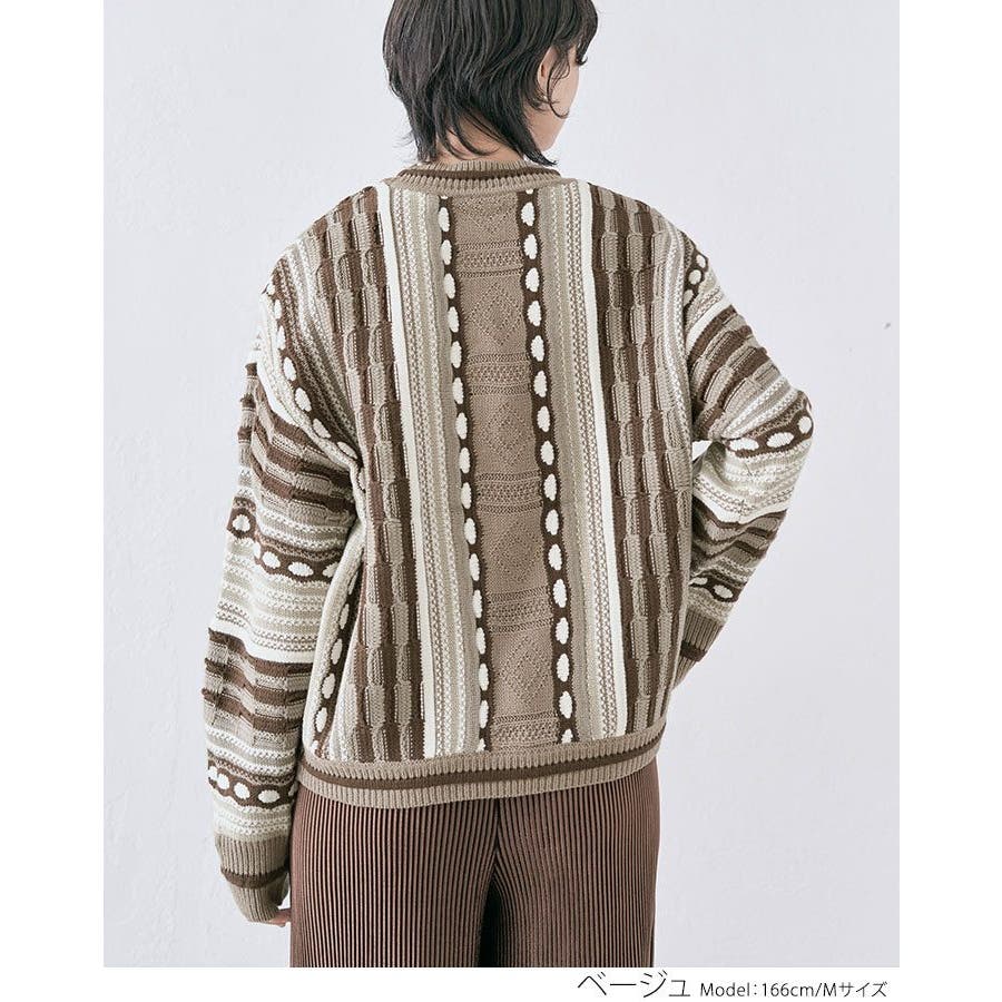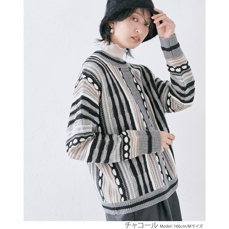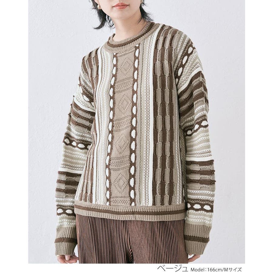 ミックス編み3Dジャガードニット ニットトップス セーター