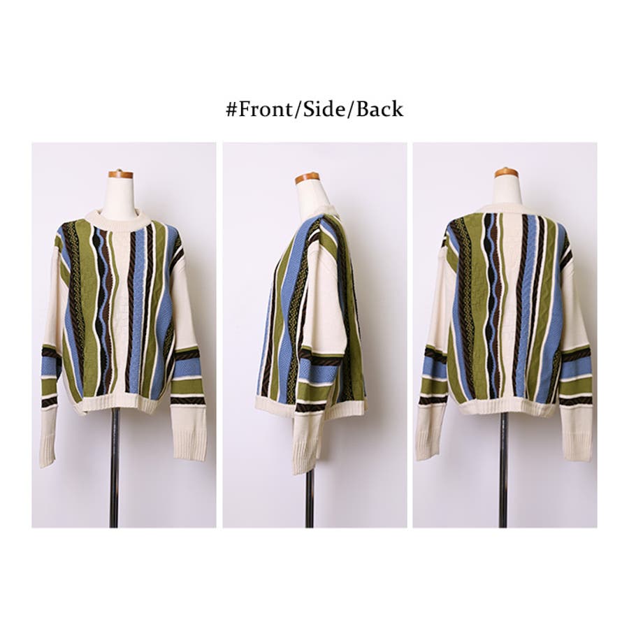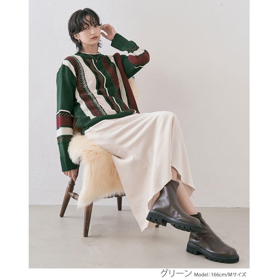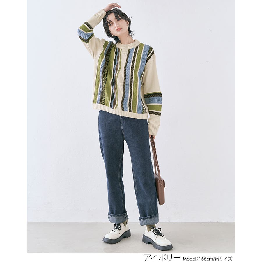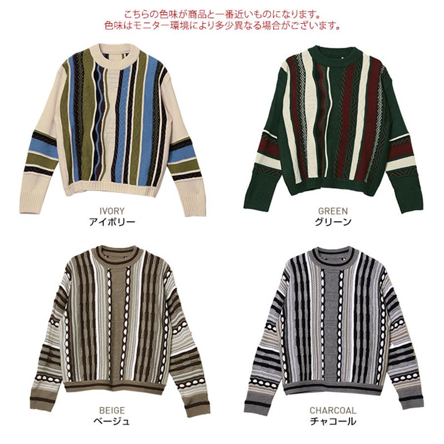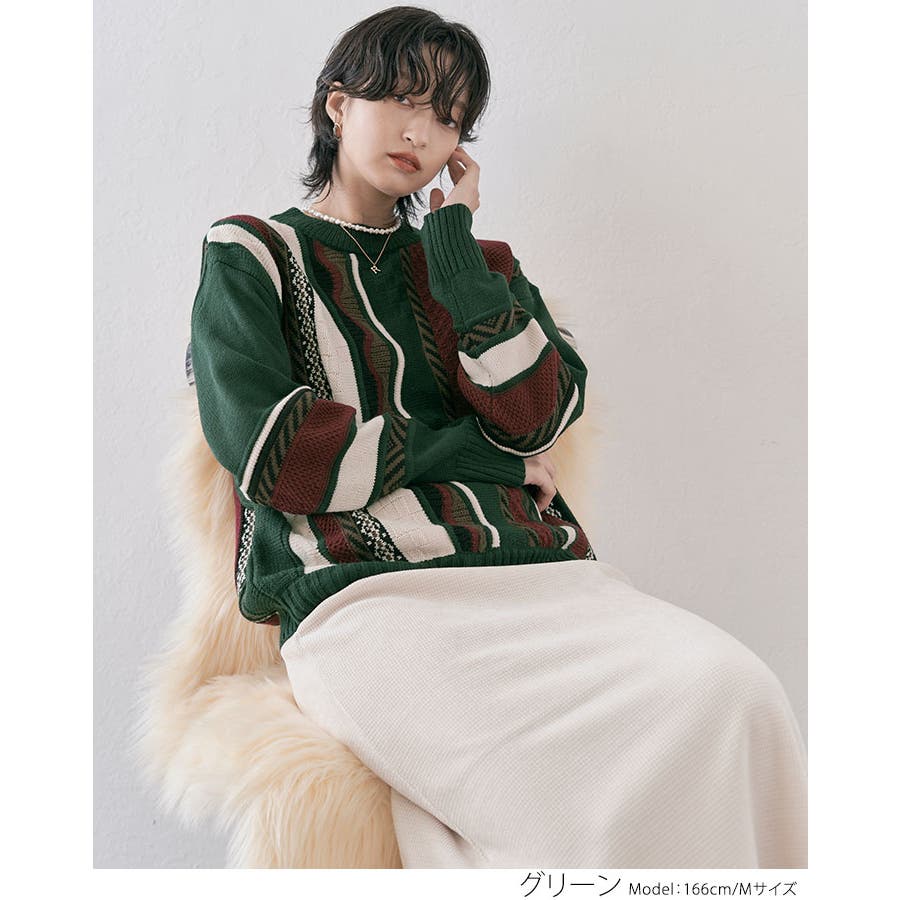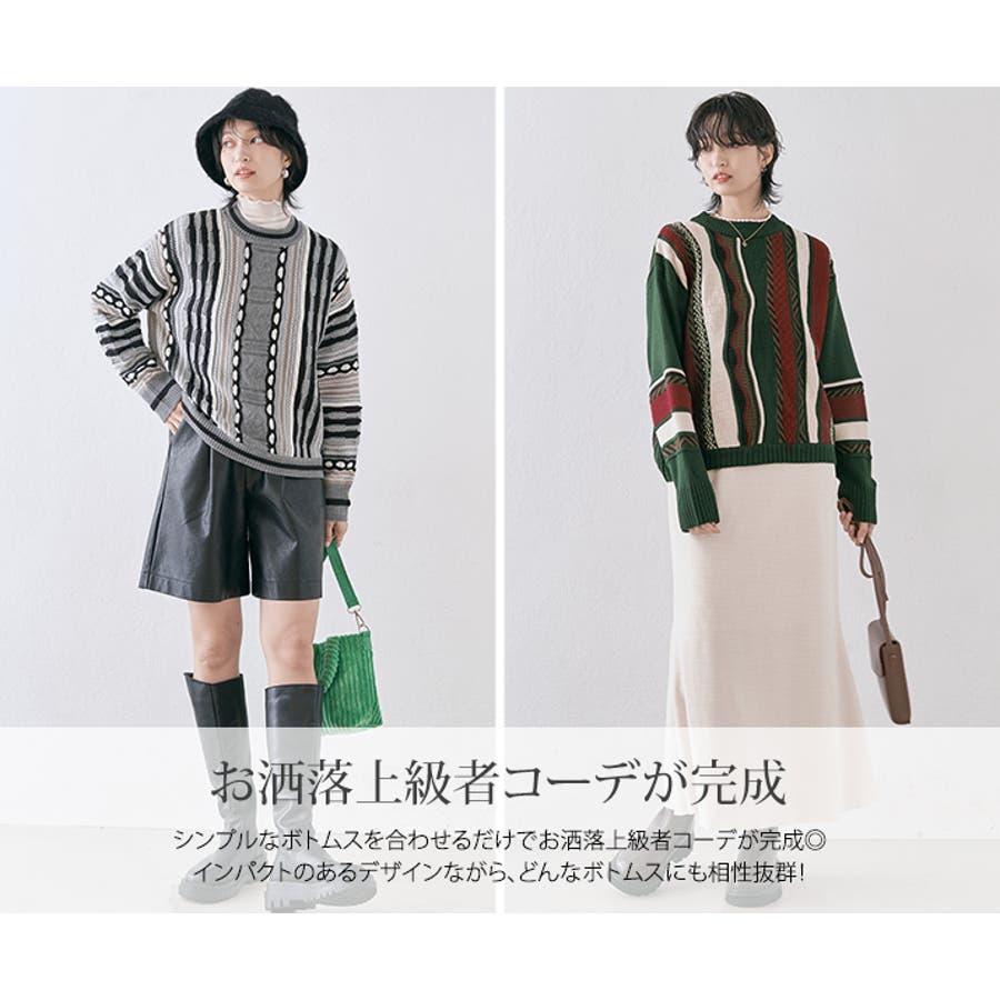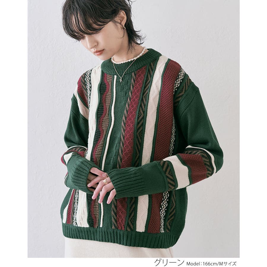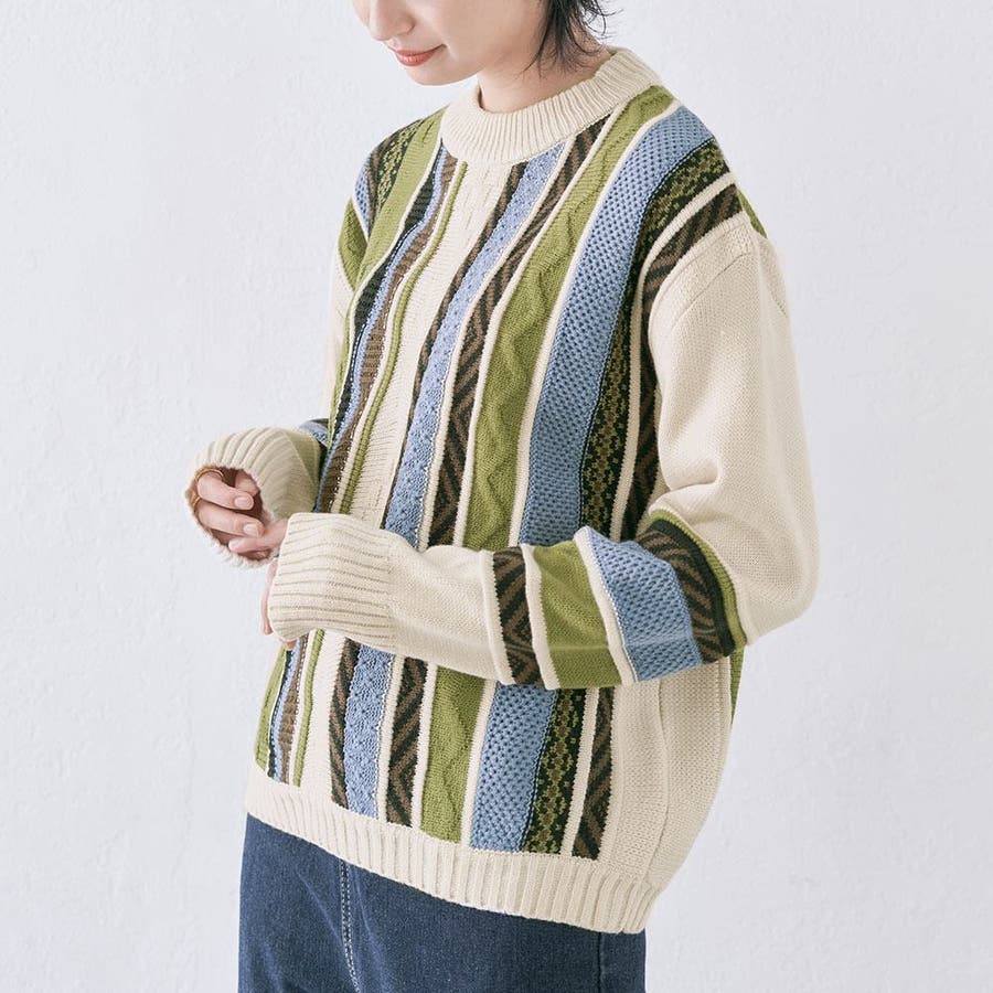 ミックス編み3Dジャガードニット ニットトップス セーター