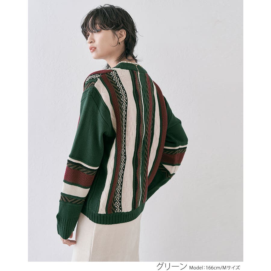 ●レトロな派手柄が目を惹く3Dジャガードニット。