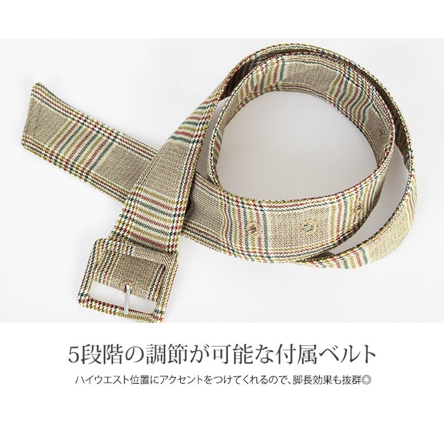 ●5段階の調節が可能な付属ベルト。ハイウエスト位置にアクセントをつけてくれるので、脚長効果も抜群◎