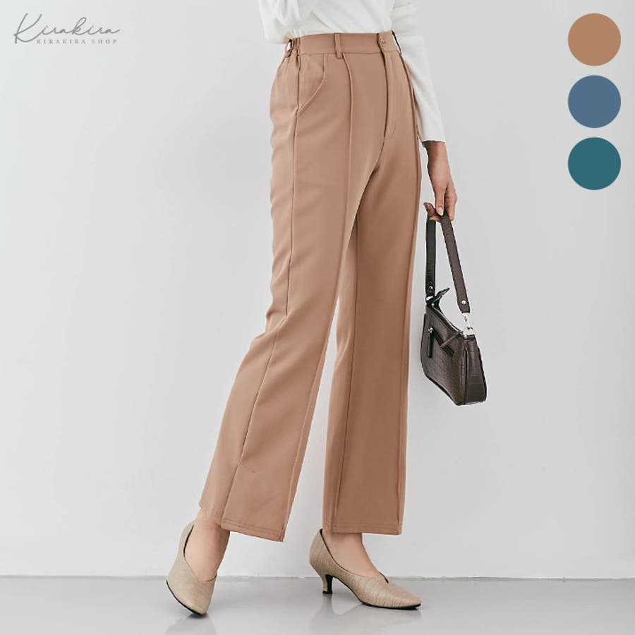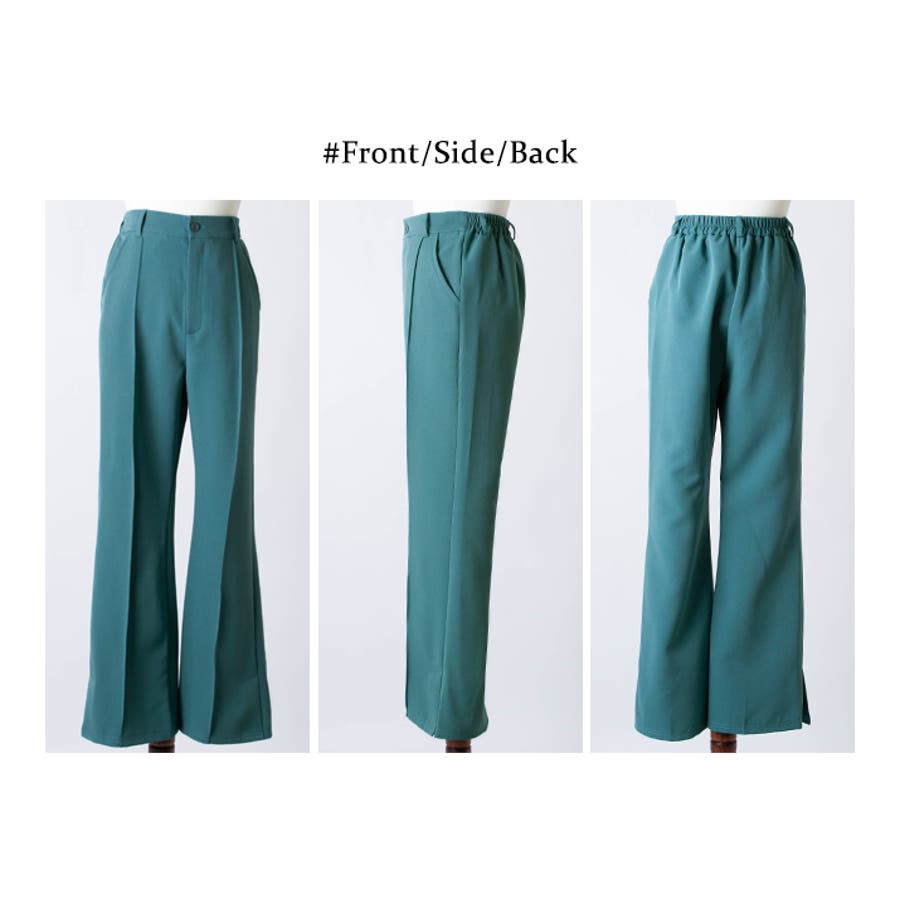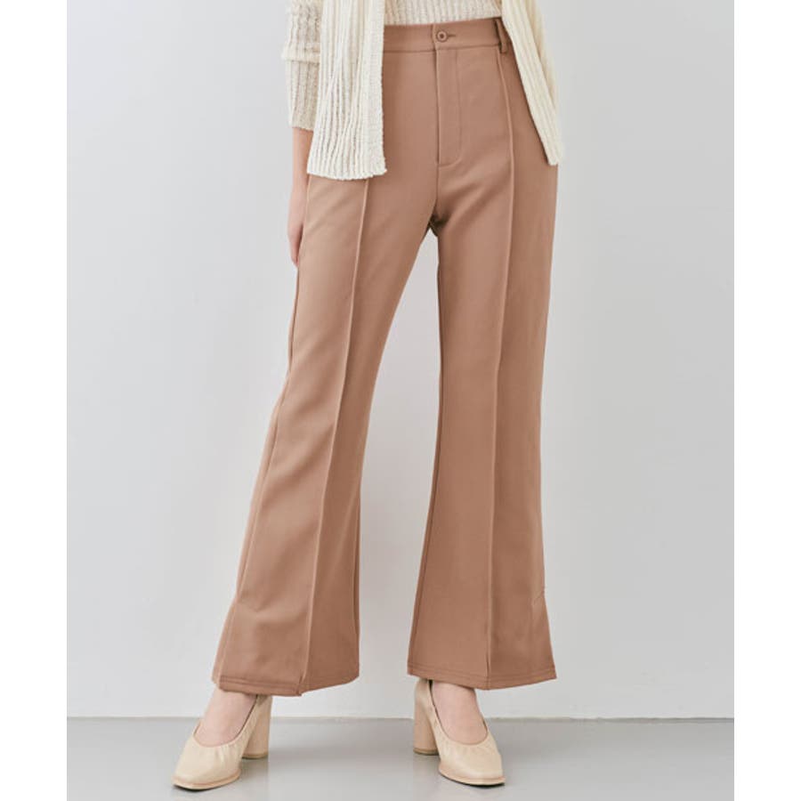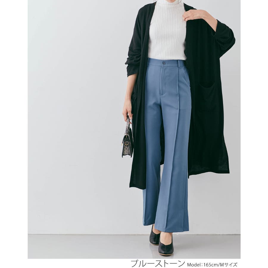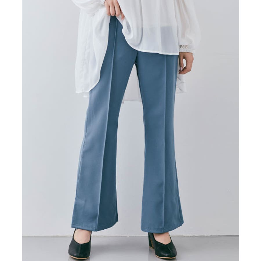 ●適度にゆとりを持たせたセミワイドのフレアシルエットが今年らしいポイント。フロントピンタック&ハイウエストで縦ラインを強調し、すっきりとした美しいレッグラインをメイク!