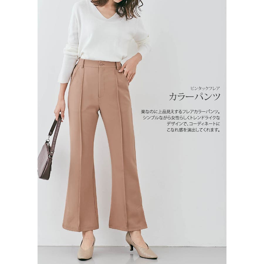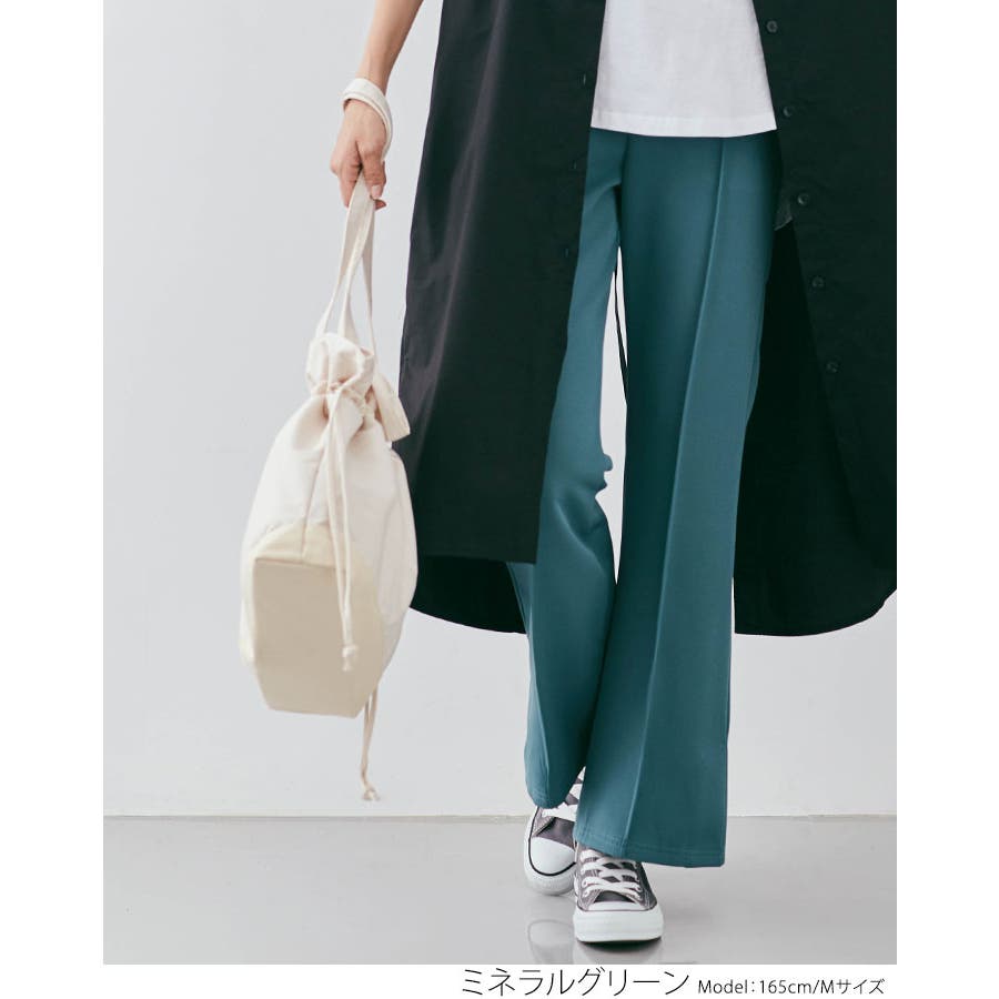●楽なのに上品見えするフレアカラーパンツ。