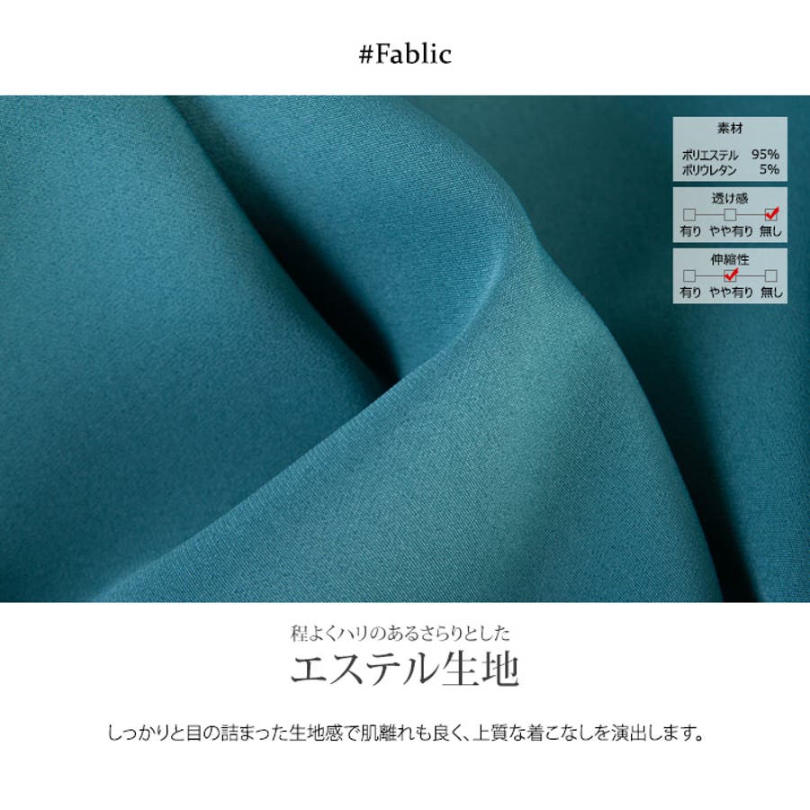 ●程よくハリのあるさらりとしたエステル生地。しっかりと目の詰まった生地感で肌離れも良く、上質な着こなしを演出します。