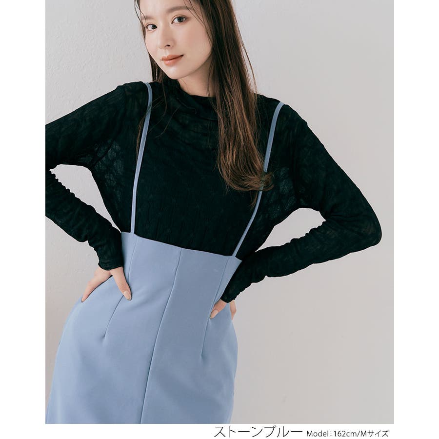 ●全4色!2サイズ!サスペンダーストレートスカート