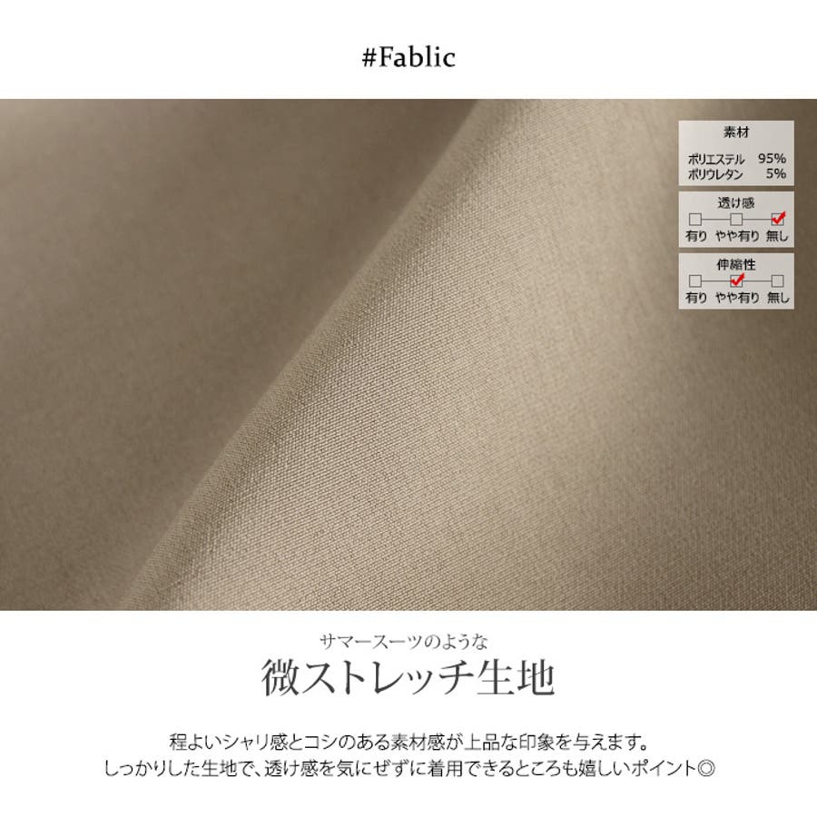 ●サマースーツのような微ストレッチ生地。程よいシャリ感とコシのある素材感が上品な印象を与えます。